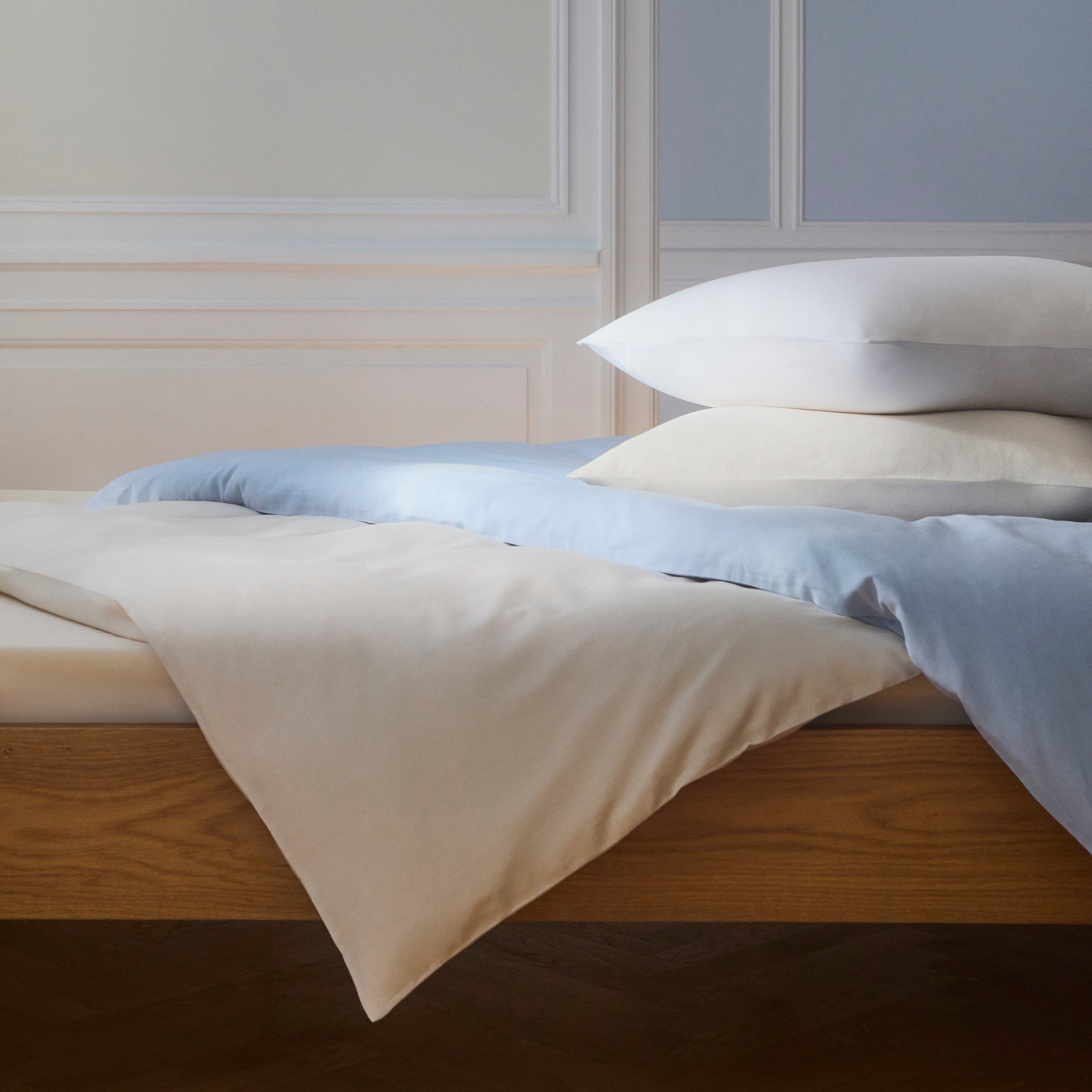 Even sengetøy i lin og bomull. Vevet kombinerer den vakre teksturen til linfibrene med bomullens delikate mykhet.