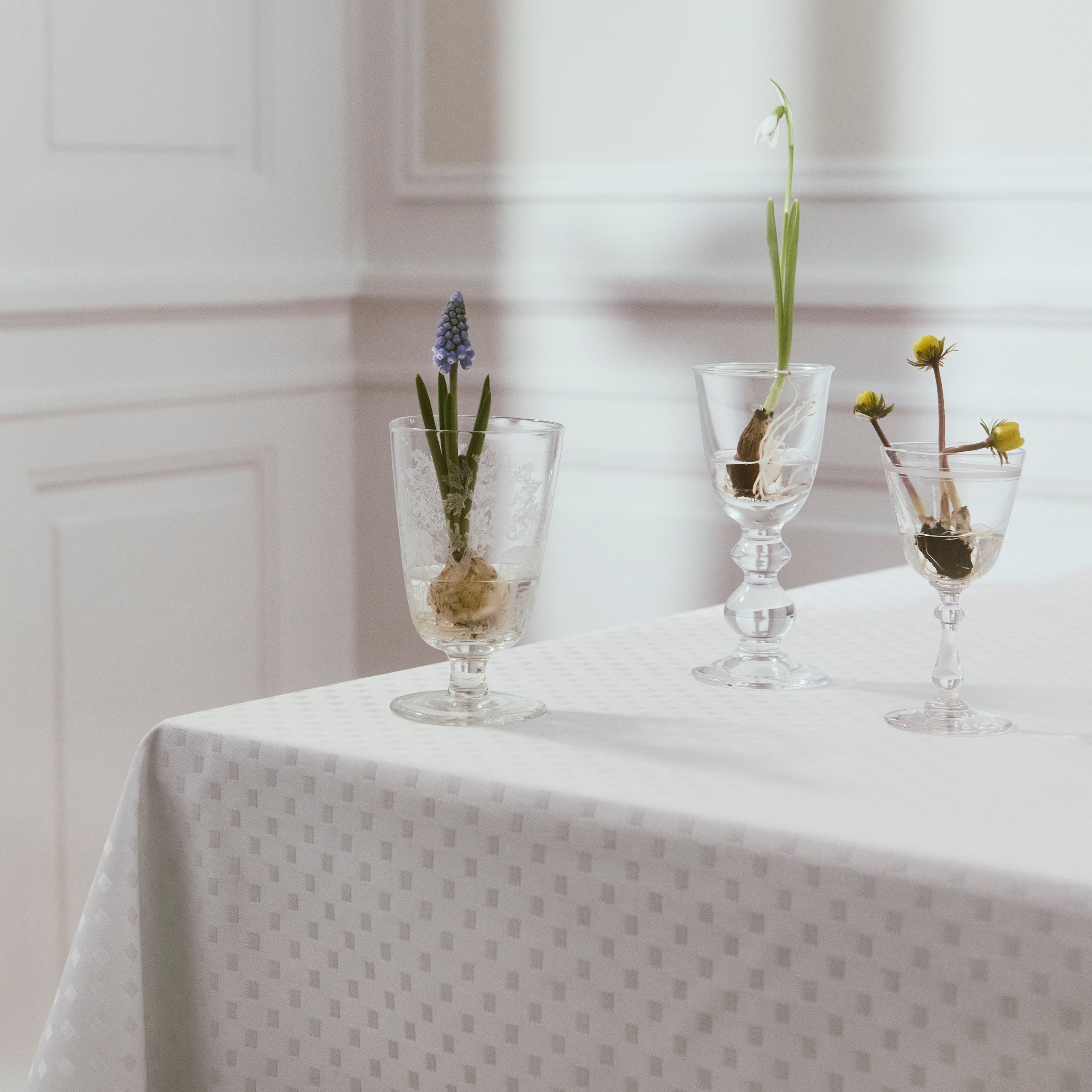 Georg Jensen Damask har alt til borddekkingen. Fra damaskvevde duker og servietter i vakre design til hånddyppede stearinlys i matchende farger.