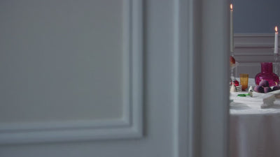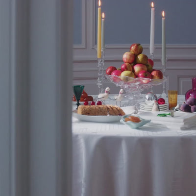 Georg Jensen Damasks juleinnredning skaper en elegant og nostalgisk ramme rundt det stemningsfulle julebordet.