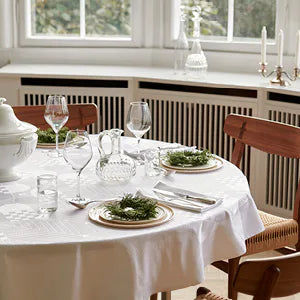 VVåre damaskvevde duker er laget av 100 % egyptisk dobbelttvunnet kjemmet bomull.