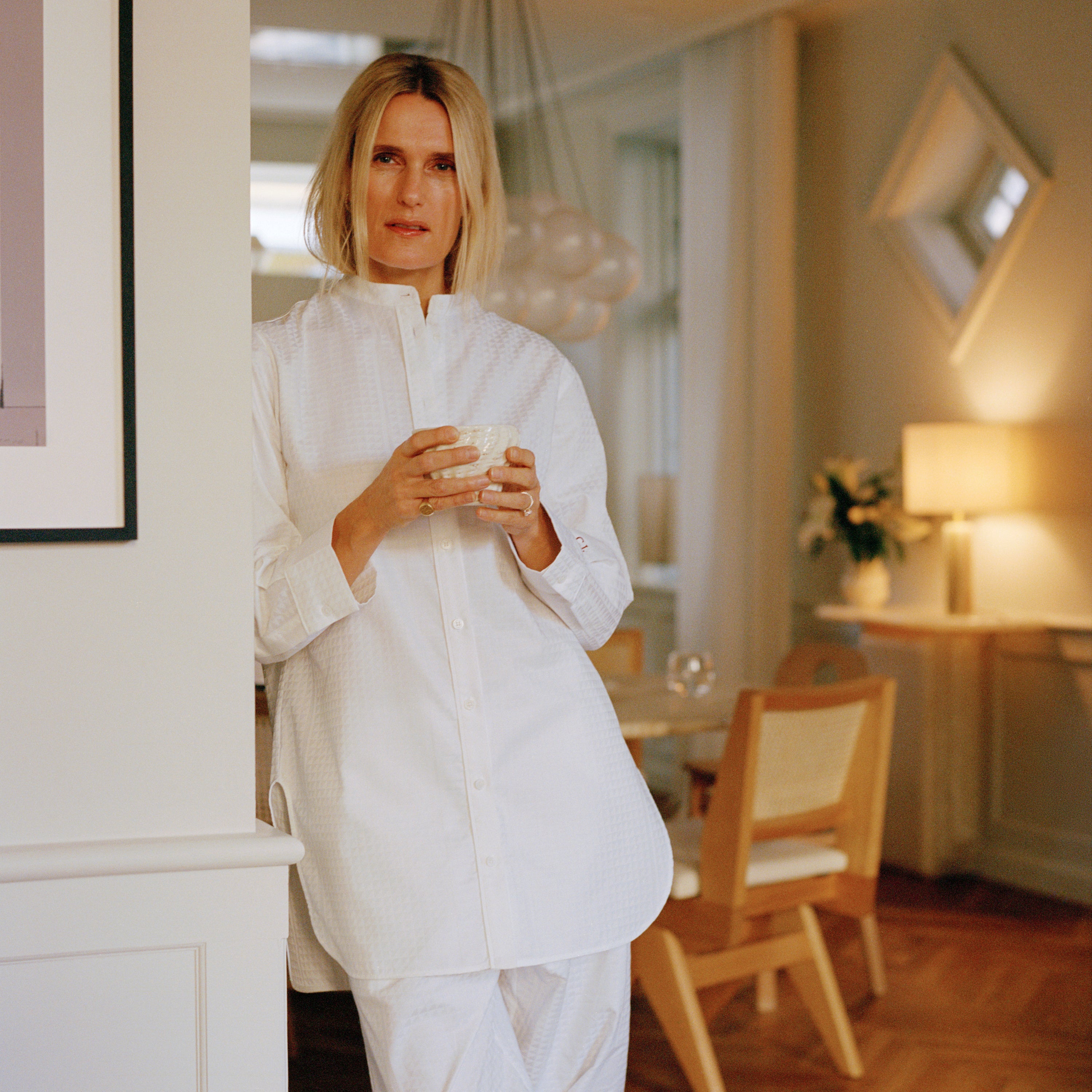 Jeg setter pris på å ha plass til å underholde mange gjester hjemme. Jeg har mange lette og fleksible møbler som kan flyttes på og jeg får lyst til å feire bursdag med et langbord i stua. Når det er sagt, vil jeg også at mitt hjem skal være et sted hvor jeg føler meg komfortabel med å tilbringe tid alene eller sammen med datteren min. Jeg var aldri alene i barndomshjemmet mitt, derfor søker jeg aktivt ensomhet og ro. Det er nok derfor jeg har innredet med lyse farger. En enkel fargepalett vekker ro. Jeg blir tiltrukket av fargerike objekter med enkle silhuetter. Hvis et design er mer snodig, kjøper jeg det i hvitt slik at det får et mer strømlinjeformet utseende.