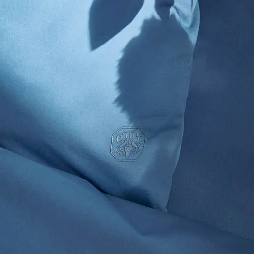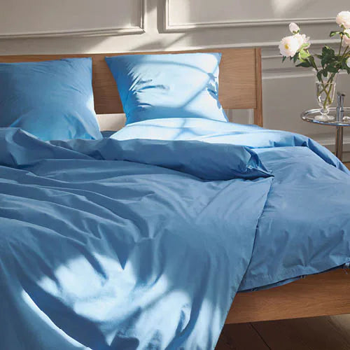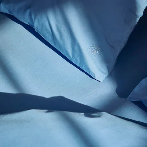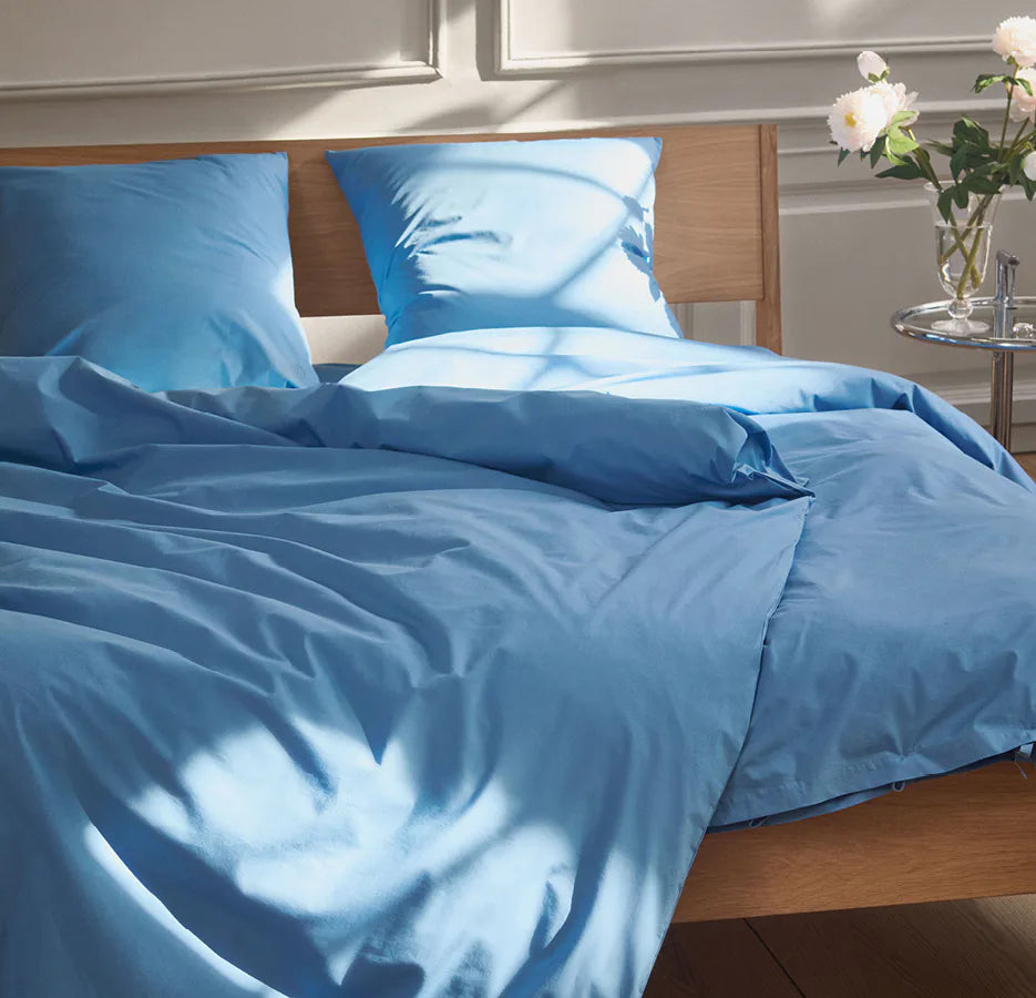 Den forførende blå, Bright Blue, fås blandt andet på sengesættet Percale, der er blødt, mat sengetøj vævet i økologisk bomuld. Sengetøjet har et lille Georg Jensen Damask-logo som signifikant detalje. Percale fås som enkelt- og dobbeltdyne og med matchende lagner.