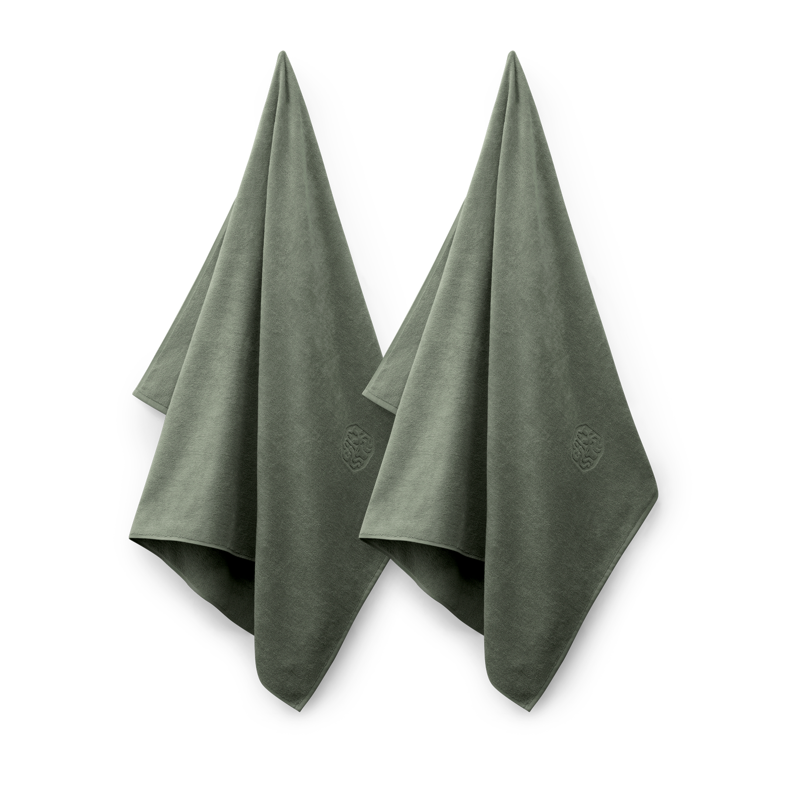 Pakke med to Damask Terry badelagner i farven Mineral Green – en smuk, støvet nuance af grøn.