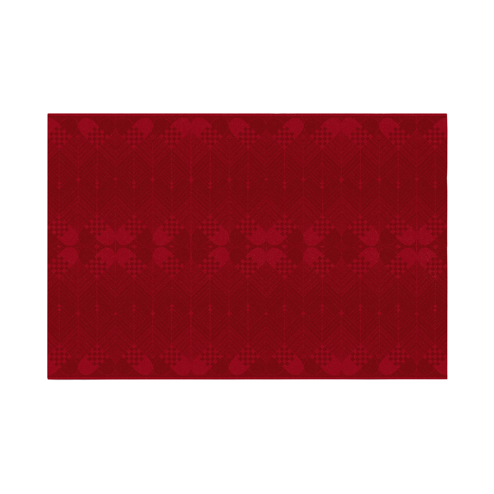 Det nostalgiske mønster med flettede julehjerter og stiliserede grankviste er designet af tekstilkunstner Bodil Bødtker-Næss for Georg Jensen Damask i 1975.