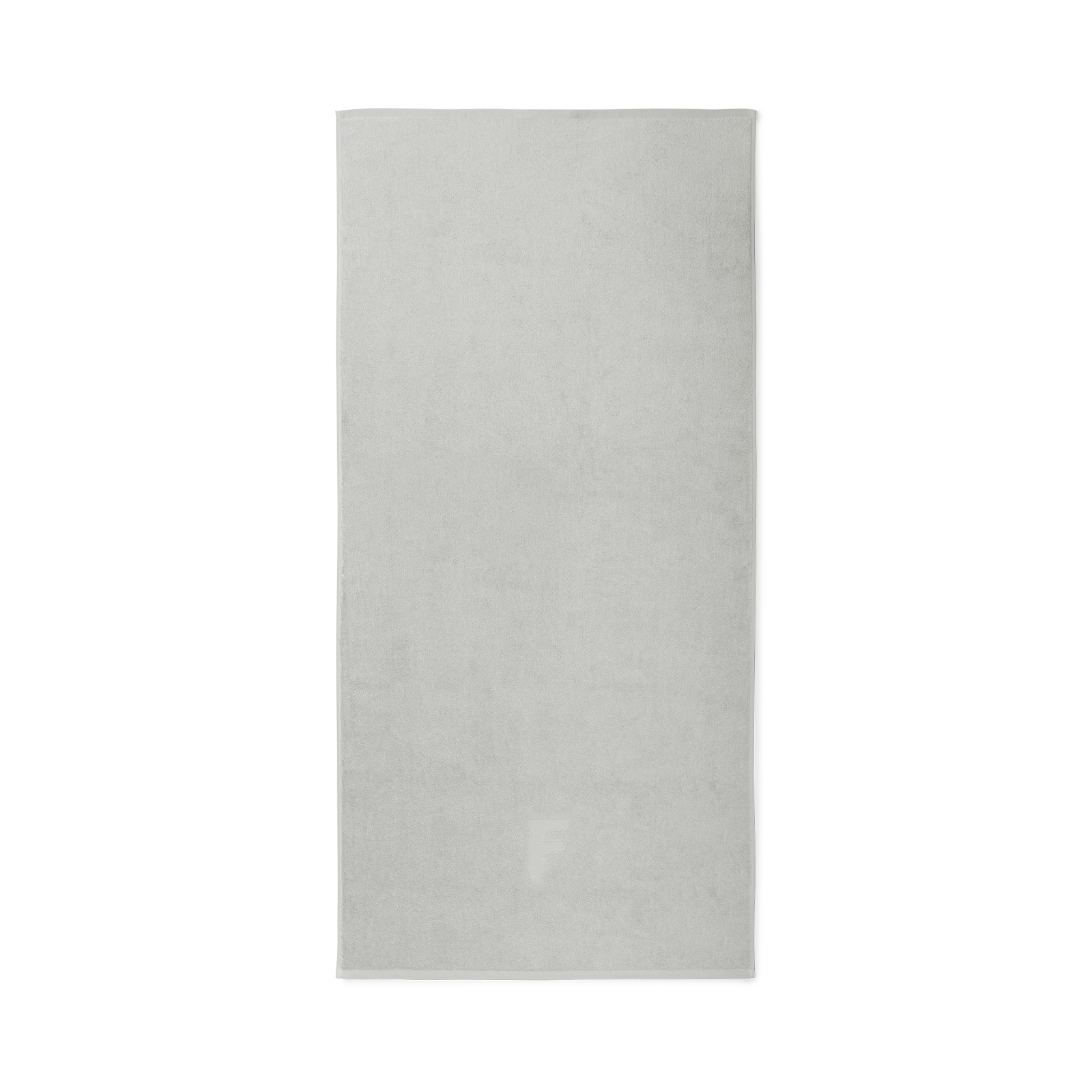 Damask Terry badehåndklæde med indvævet F bogstav. Badehåndklædet er jacquardvævet i 100 % dobbelttvundet, kæmmet bomuld med bogstav i relief. Det er både blødt, glansfuldt og slidstærkt. Den elegante farve, Platinum Grey, er en let og kølig nuance af grå.