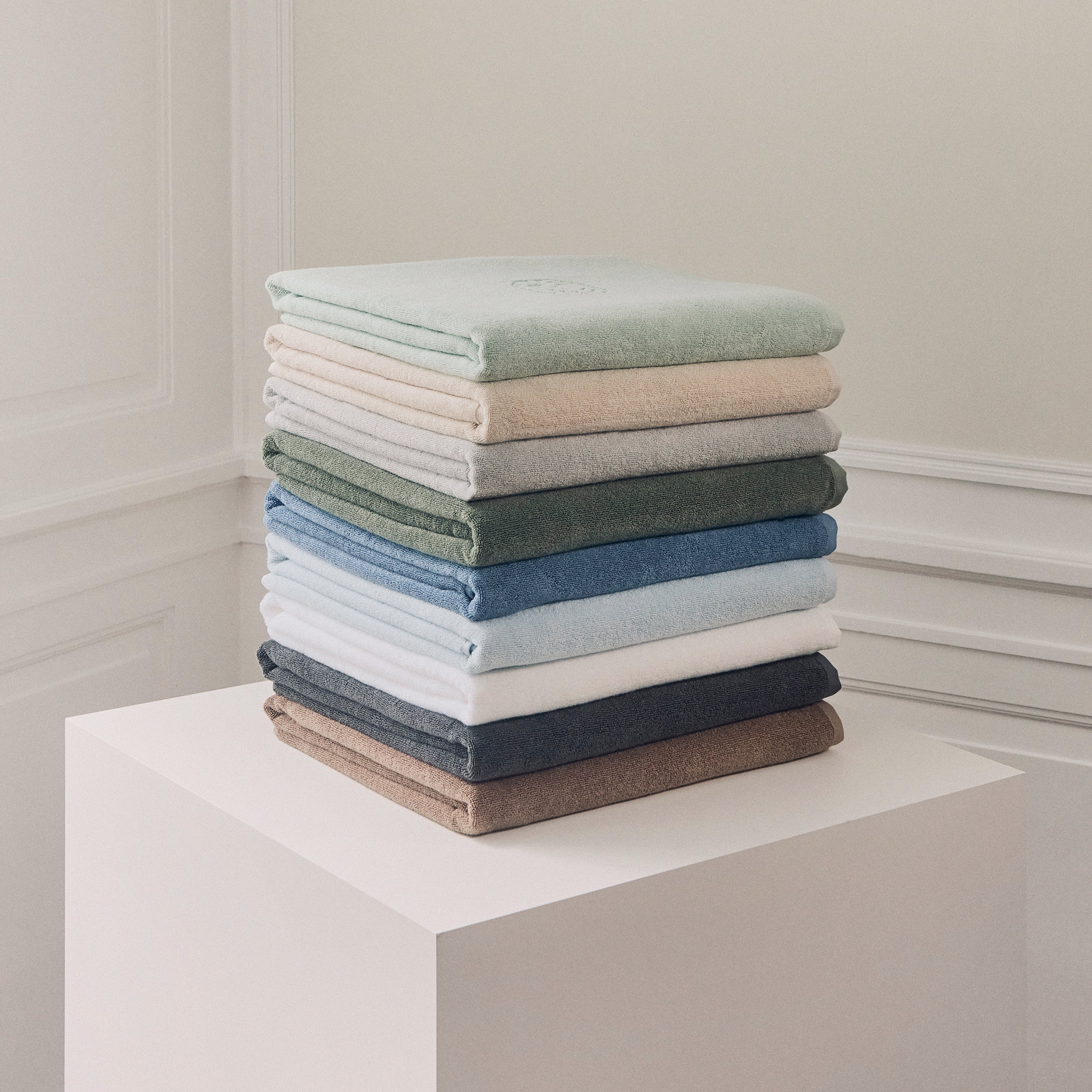Det store og bløde Damask Terry badelagen har et naturligt udtryk i farven Archive Linen – en lys, beige med referencer til linned fra vores århundreder gamle arkiv. Som elegant detalje har badelagnet Georg Jensen Damasks ikoniske logo indvævet.