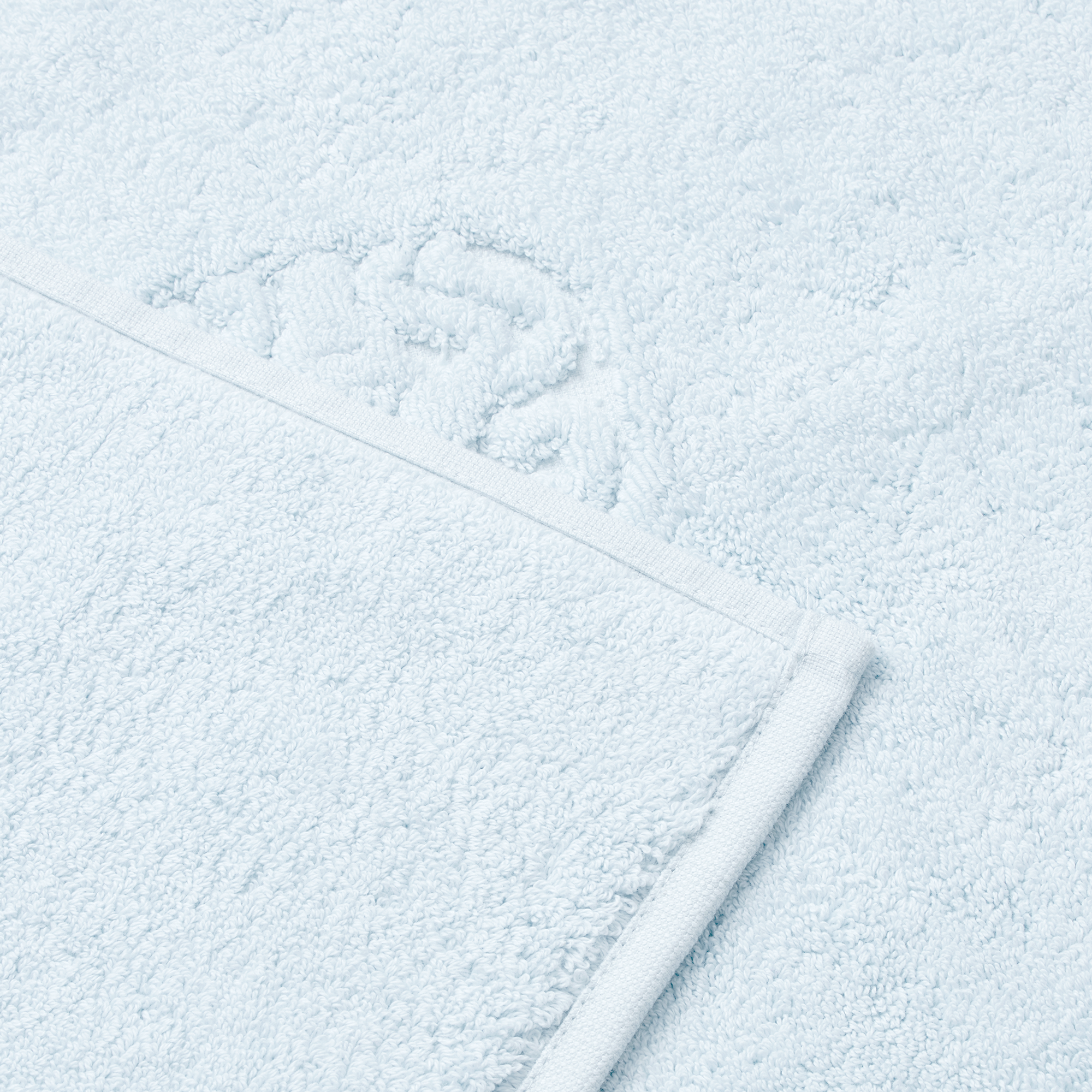 Damask Terry bademåtten har et enkelt udtryk med Georg Jensen Damasks ikoniske logo indvævet som elegant detalje. Minimal Blue er en hel let variant af lyseblå med et strejf af aqua.