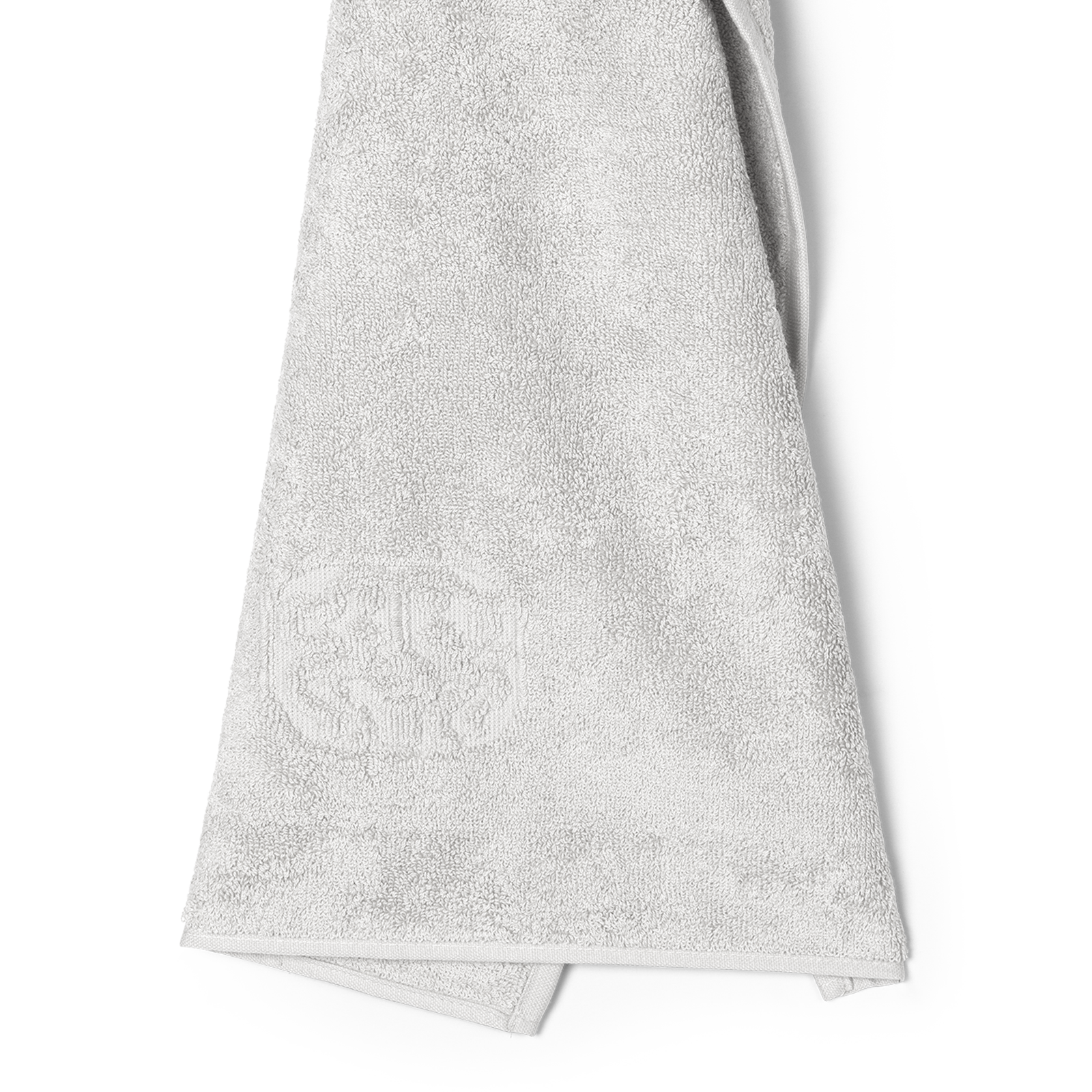 Damask Terry gæstehåndklædet har et enkelt udtryk med Georg Jensen Damasks ikoniske logo indvævet som elegant detalje. Platinium Grey er en lys og rolig nuance af grå.