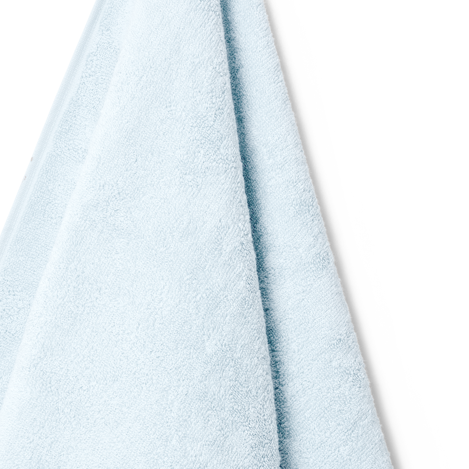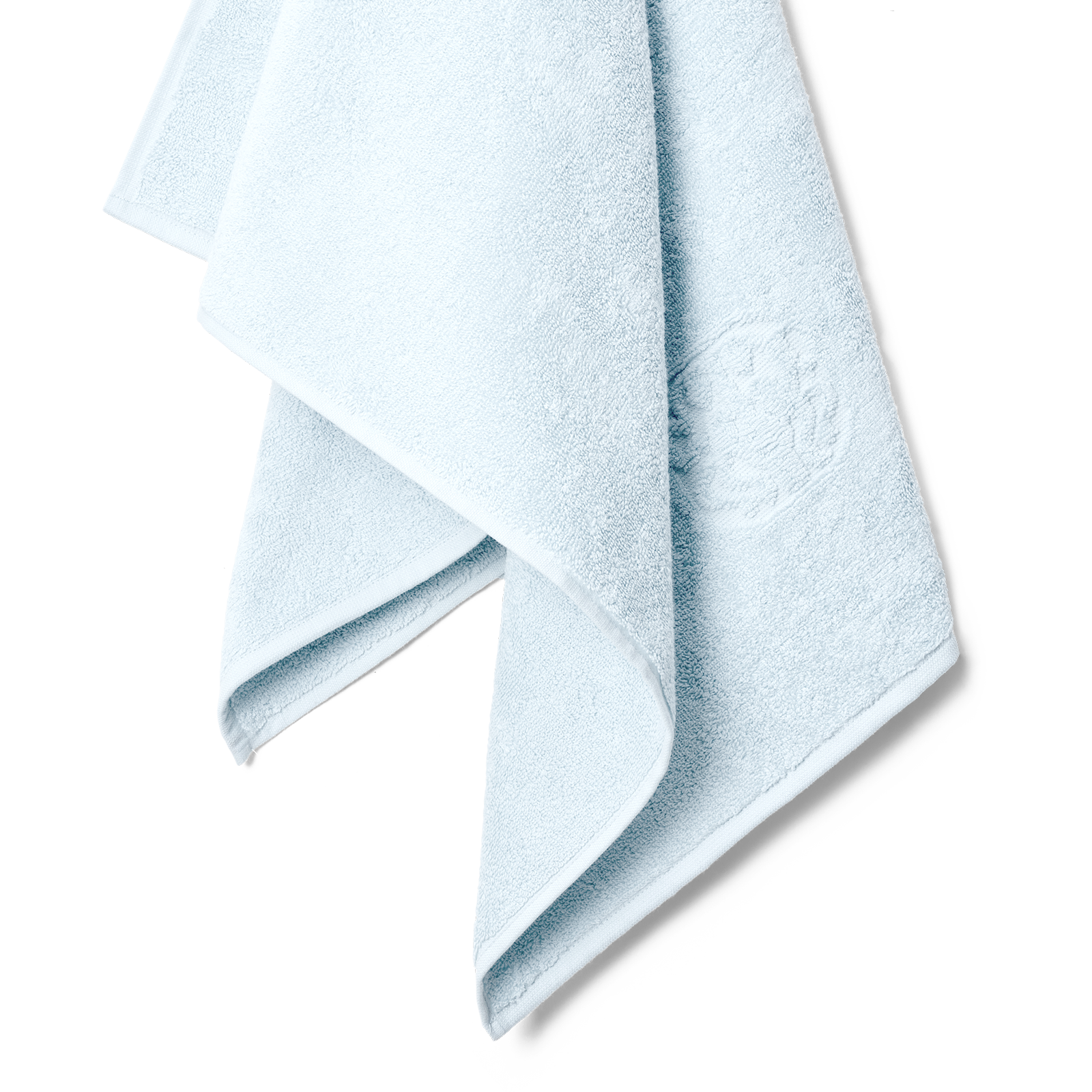 Damask Terry håndklædet har et enkelt udtryk med Georg Jensen Damasks ikoniske logo indvævet som elegant detalje. Minimal Blue er en hel let variant af lyseblå med et strejf af aqua.