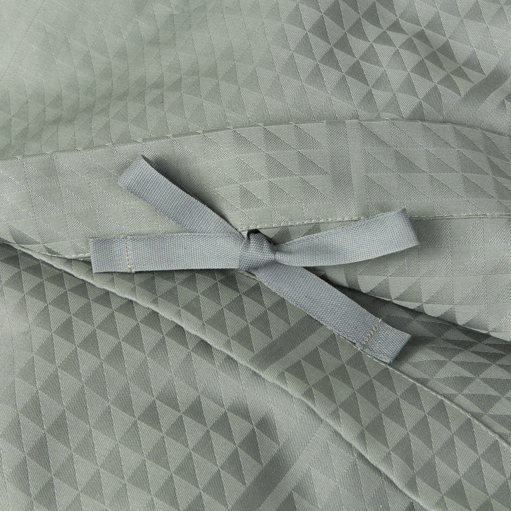 Georg Jensen Damasks Facet sengetøj har et stringent design og er damaskvævet i 100 % kæmmet bomuld, som giver en blød og glat overflade. Med Facet designet benytter tekstilkunstner Jette Nevers den klassiske damaskvævning til at skabe et elegant skyggespil, der smukt fremhæves i den mørkegrønne farve Mineral Green.