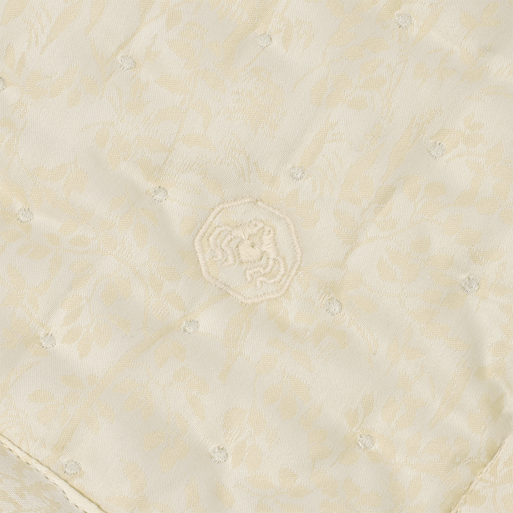 Alle produkter har fået broderet et lille Georg Jensen Damask-børnelogo. Misty Yellow er en mild, lysegul farve.