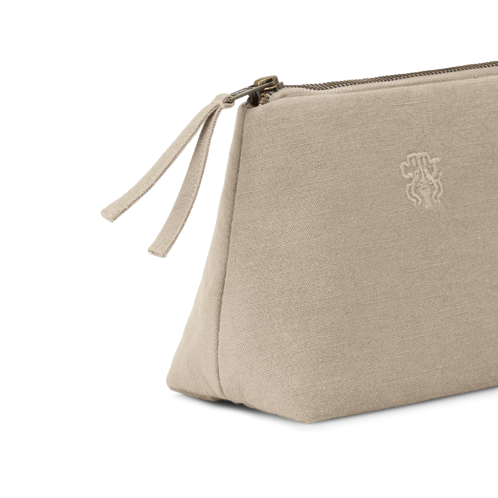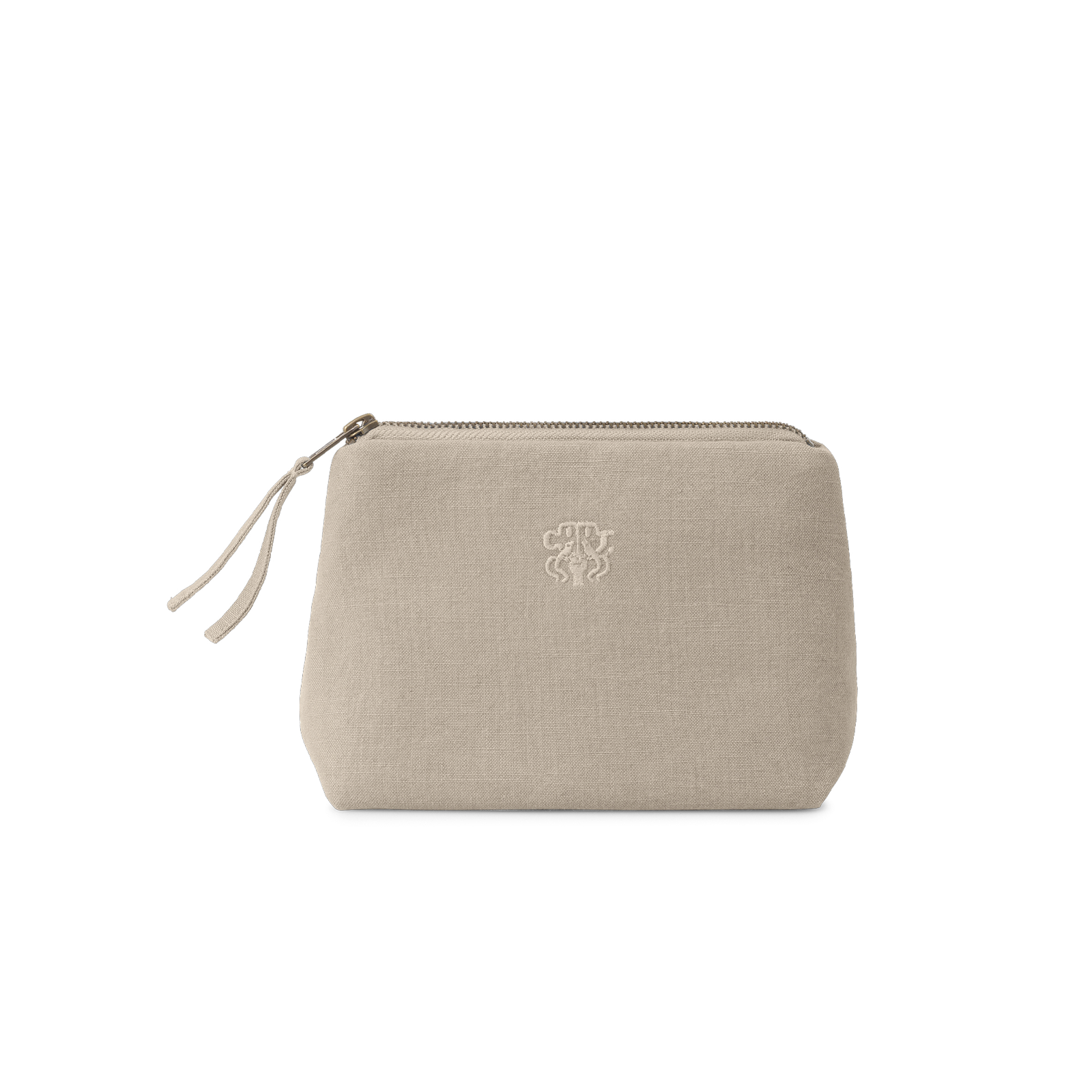 Funktionel og rummelig kosmetikpung i et tidløst design. All kosmetikpungen er vævet i 100 % bomuld med en indre lomme og har Georg Jensen Damasks logo broderet som elegant detalje. Farven Cashmere er en diskret, brun nuance af grå, der har et roligt og eksklusivt udtryk – inspireret af råfarven på kashmirfårets uld.