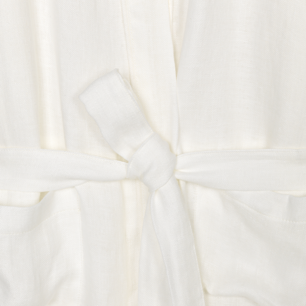 I den hvide farve får hørkimonoen et ekstra let og lækkert udtryk, som fungerer på tværs af sæsoner og årstider.