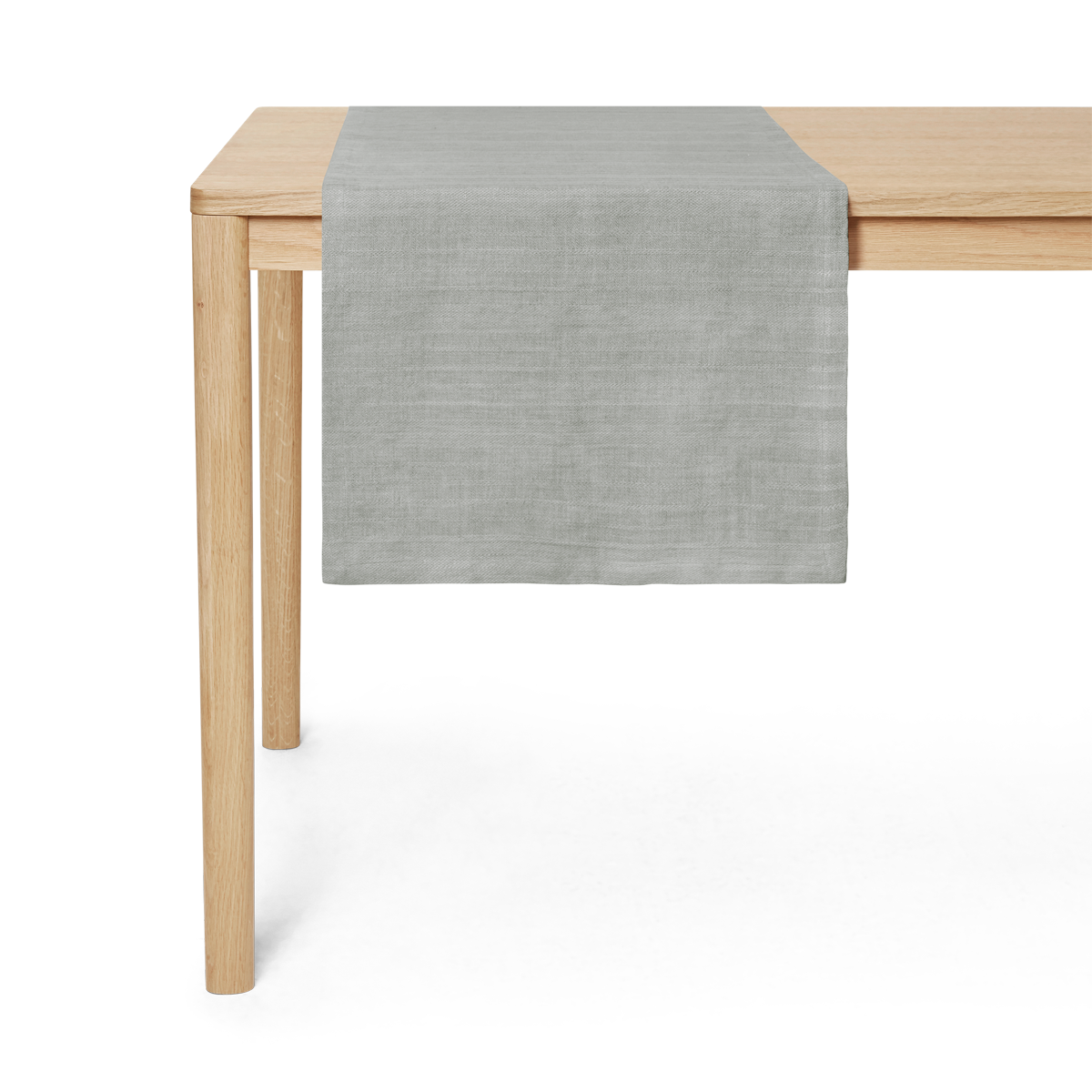 Hørkvaliteten og den lysegrå farve understreger den tidløse vævning og gør løberen til en klassiker på bordet.