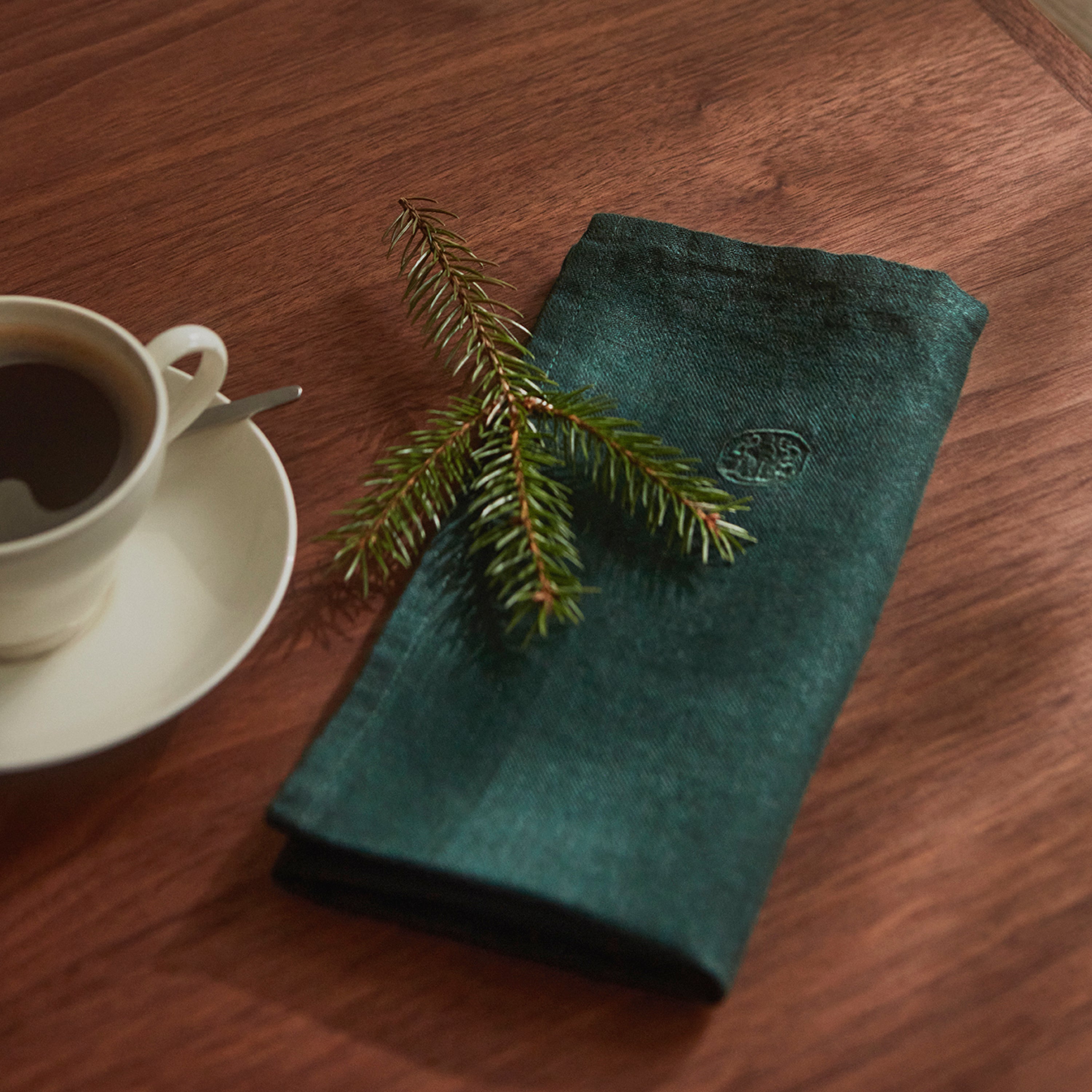 Den bløde mørkegrønne hørserviet passer smukt til alle julens sammenkomster. Twillvævningen med fin hørtråd i højeste kvalitet og den karakteristiske kant giver hørservietten et let og nordisk udtryk.