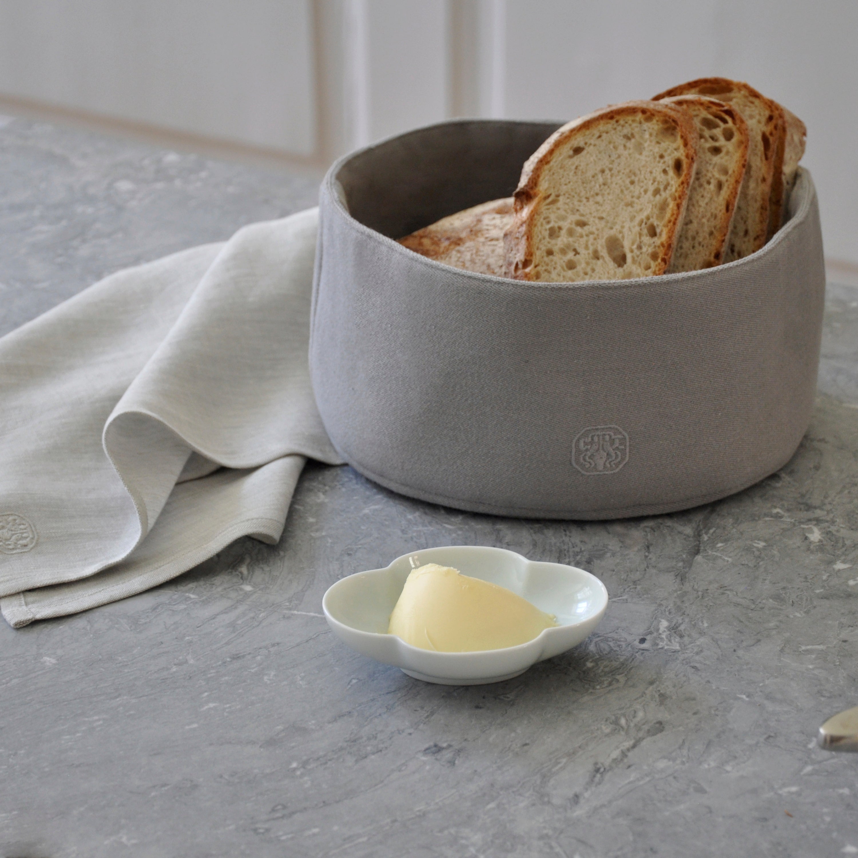 Brødkurven Plain er syet af satinvævet overskudstekstil fra Georg Jensen Damask øvrige produktion, hvilket giver rigtig god mening i en verden af i dag. Tekstilet er i 100 % bomuld og designet er skabt, så det holder mange år frem. Plain-brødkurven hører til i en lille kollektion af accessories i tekstiler til køkkenet, hvor du også finder tehætte, kaffehætte, forklæder og grydelapper.