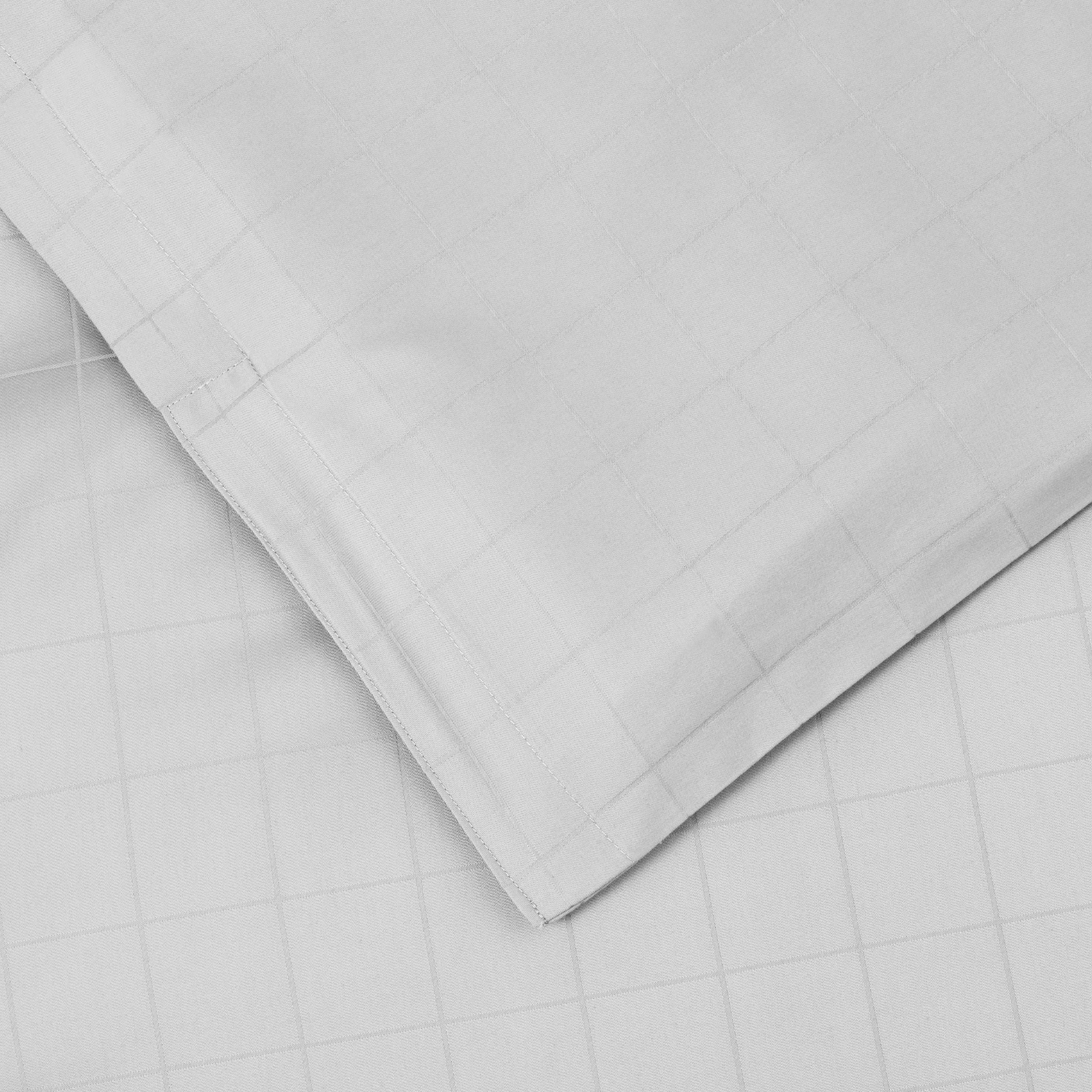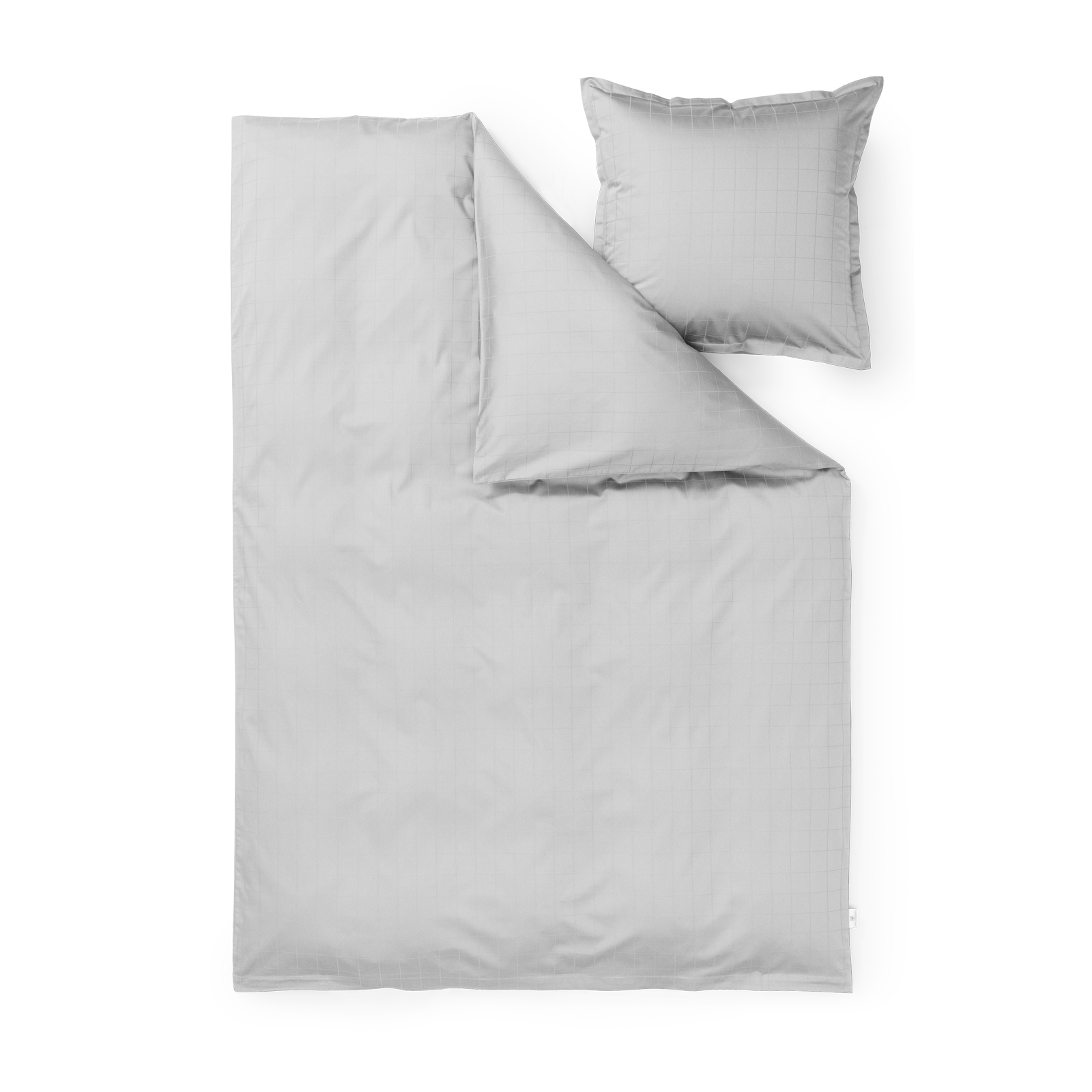 Light Squares sengetøj med et let grafisk mønster, der fremhæves i den fine satinvævning. Light Squares er vævet i 100 % kæmmet bomuld, der giver en stærk og blød overflade. Den lyse, grå farve, Frost Grey, giver sengetøjet et elegant udtryk.