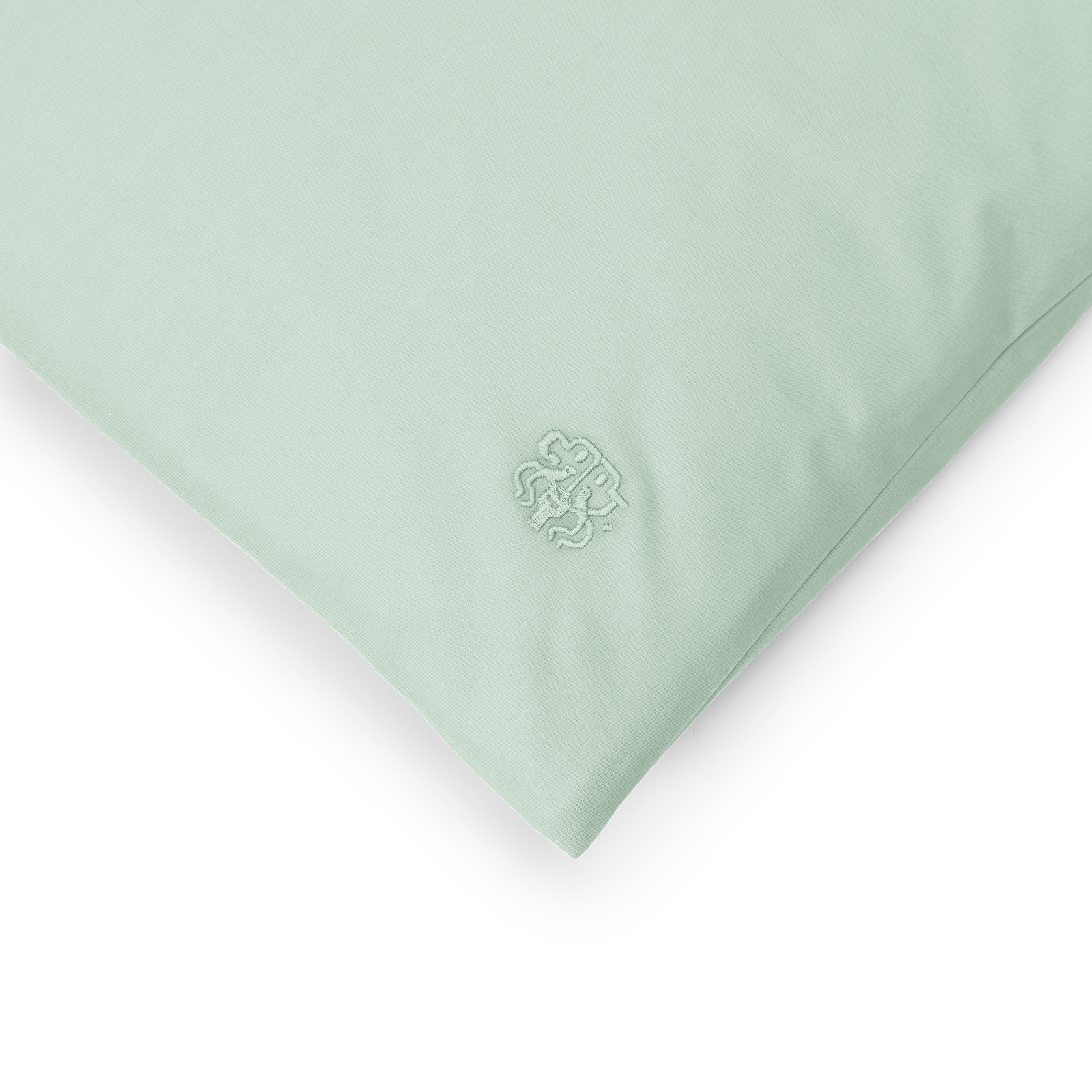 Hovedpudebetrækket har kuvertlukning og bærer Georg Jensen Damasks ikoniske logo som et diskret broderi. Den klare, grønblå farve, Glass Green, er inspireret af farven på råglas.