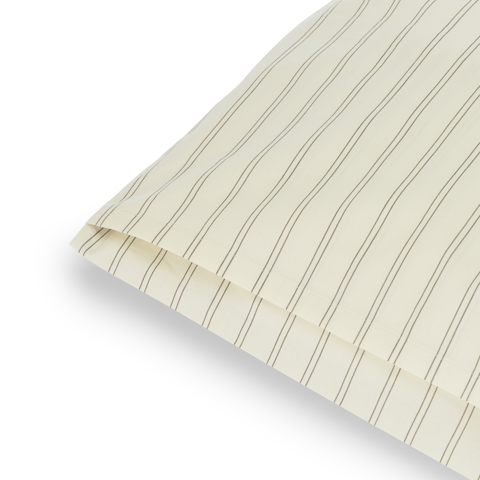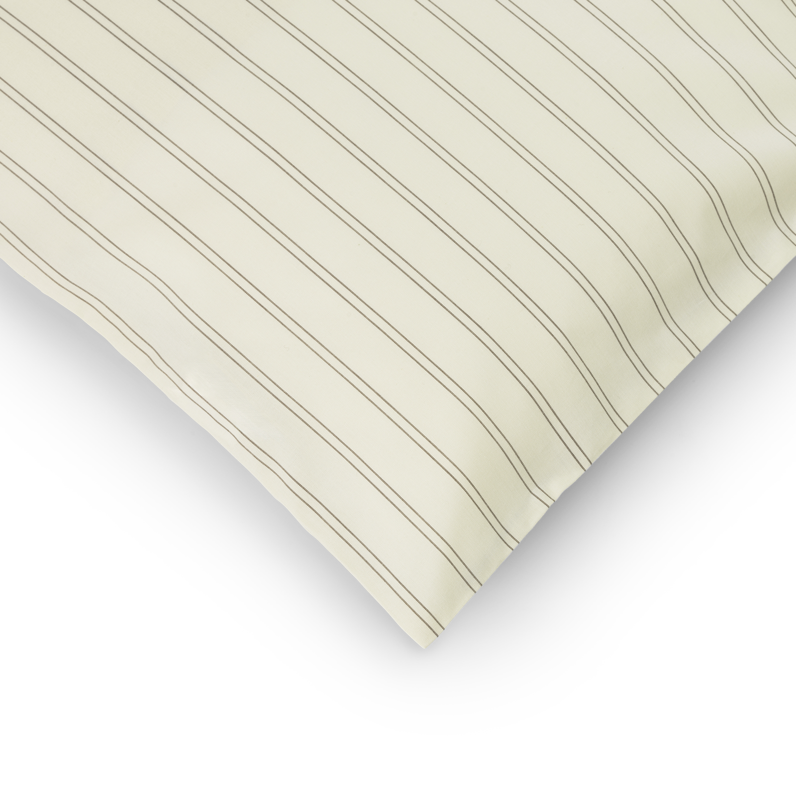 Supima Pinstripe hovedpudebetrækket har slanke nålestriber i Walnut med en baggrund i farven Archive Linen – en lys beige farve med referencer til linned fra vores århundrede gamle arkiv.