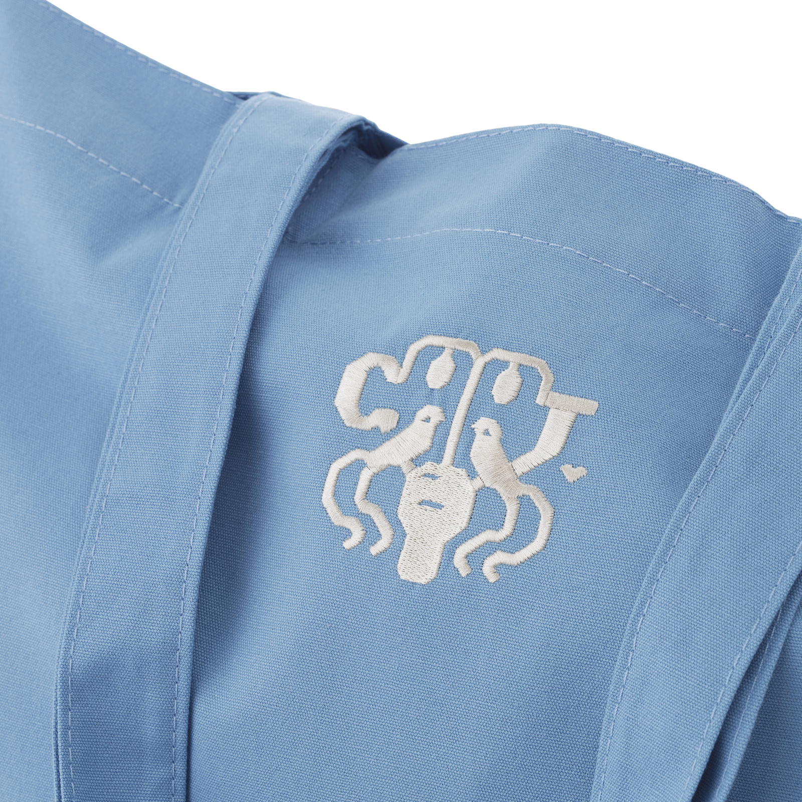 Praktisk kanvastaske i klar, blå farve. Den rummelige taske er vævet i 100 % bomuld og bærer Georg Jensen Damasks ikoniske logo som et smukt broderi.