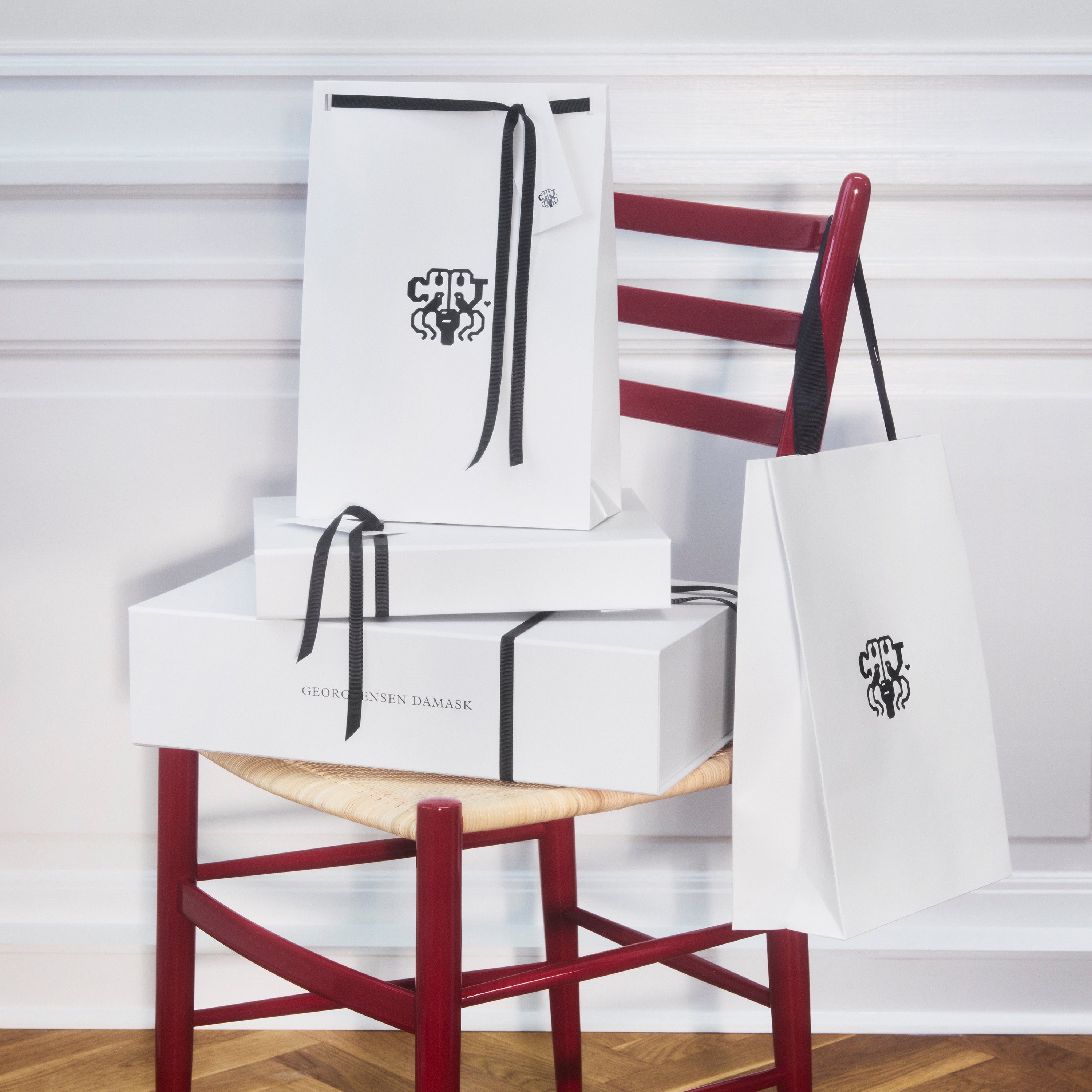 Vi pakker inn alle gaver enten i en fin gavepose eller en solid gaveeske – begge i et enkelt hvitt design – med et vakkert satengbånd rundt. Når du mottar bestillingen din fra oss, kan du gi gaven videre til mottakeren med en gang.
