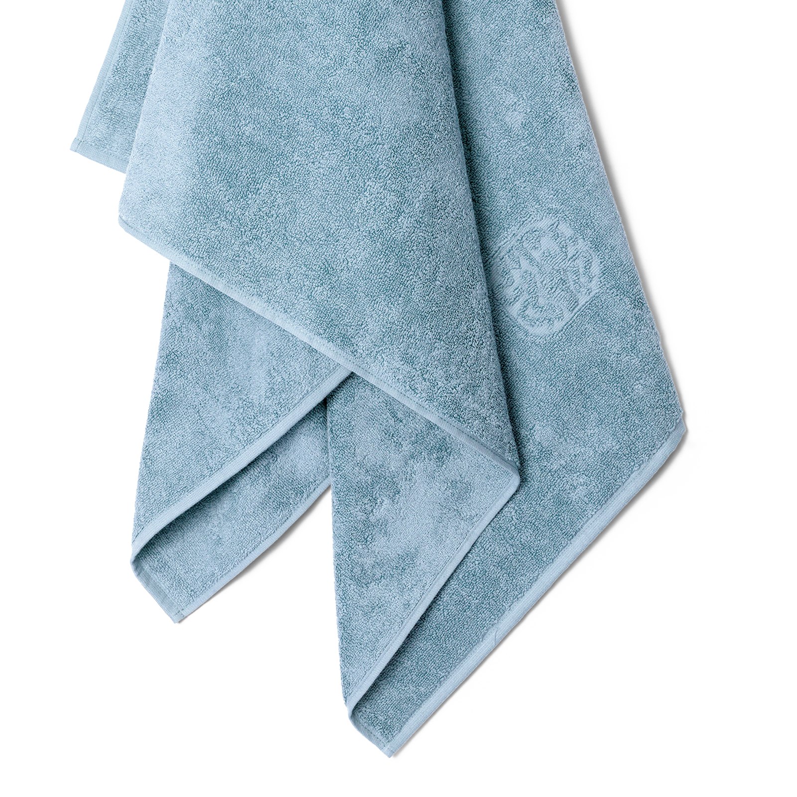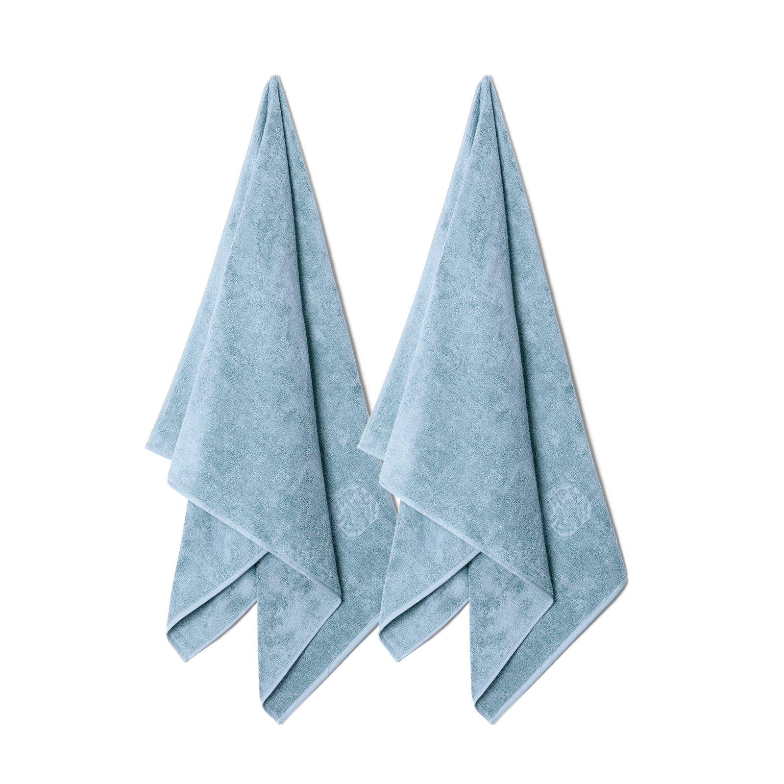 2 stk. Damask Terry badehåndklær i fargen Blue Hour – en vakker og tidløs mellomblå farge. Badehåndklærne har et enkelt uttrykk med Georg Jensen Damasks ikoniske logo innvevd som en elegant detalj.