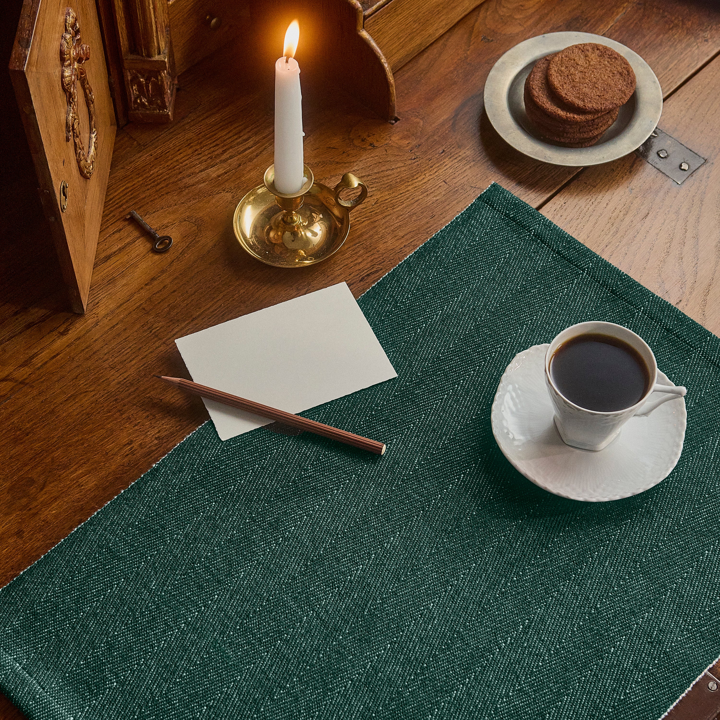 Dekk et elegant bord med Herringbone-bordbrikker i Evergreen – en dyp og kjølig grønnfarge.