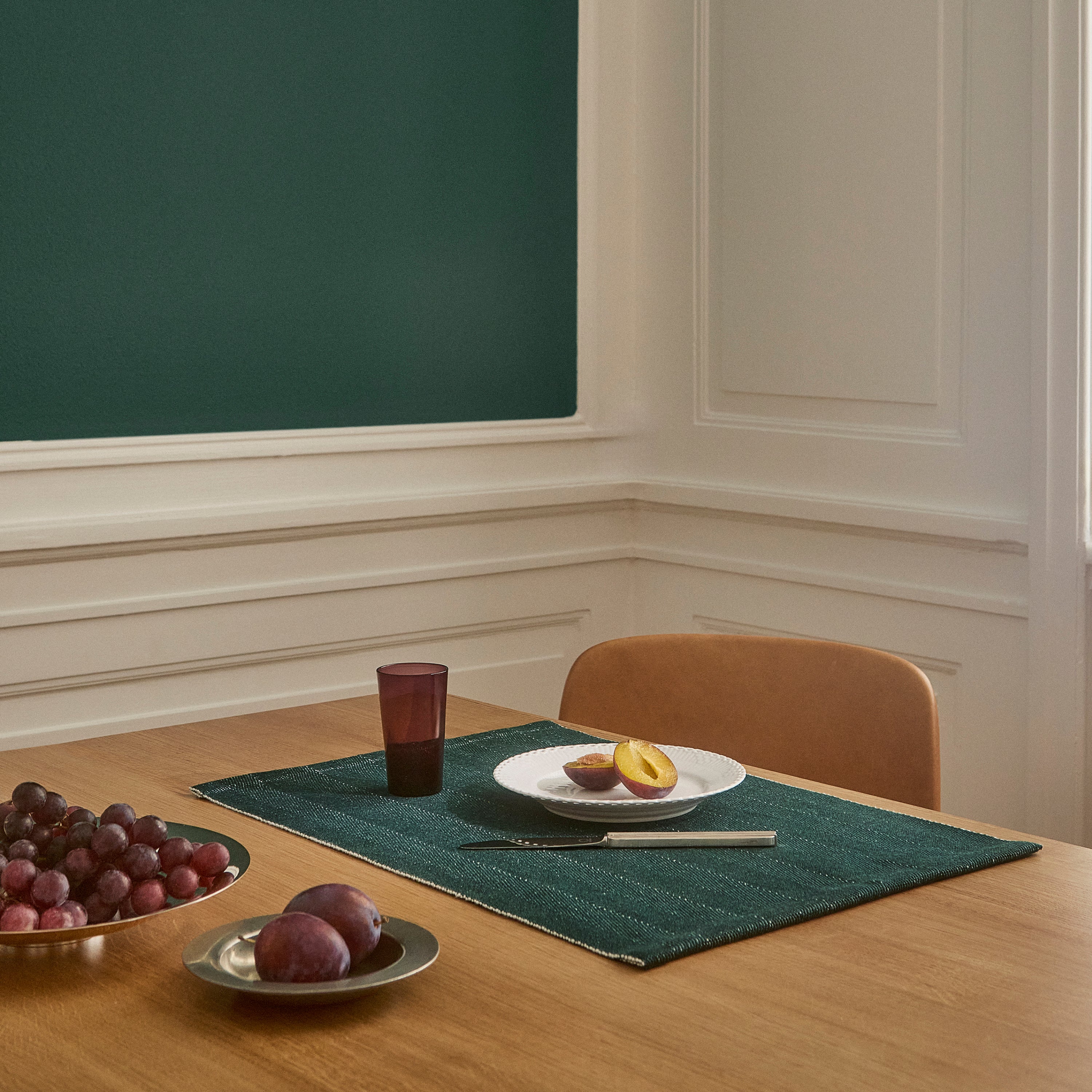 Dekk et elegant bord med Herringbone-bordbrikker i Evergreen – en dyp og kjølig grønnfarge.