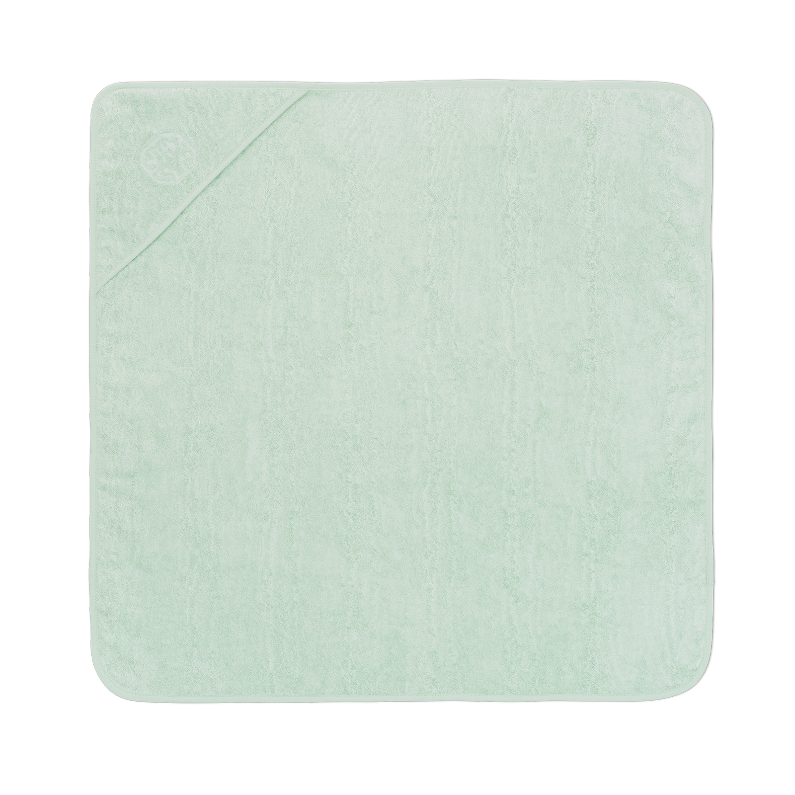 Mykt frottéhåndkle med hette til barn. Damask Terry-håndkleet har et enkelt uttrykk med Georg Jensen Damasks ikoniske veverfugl innvevd som en elegant detalj på hetten. Den klare, grønnblå fargen, Glass Green, er inspirert av fargen på råglass.