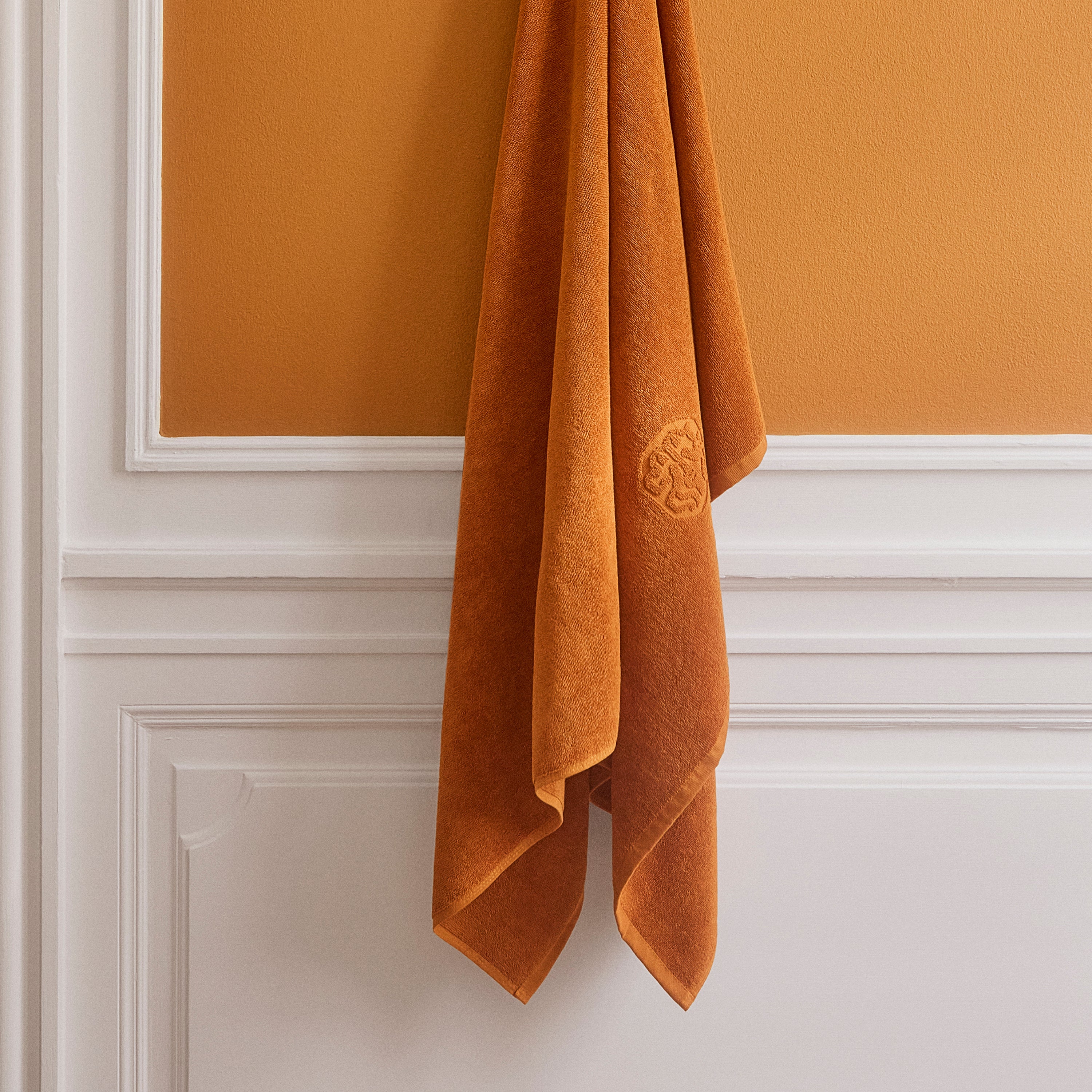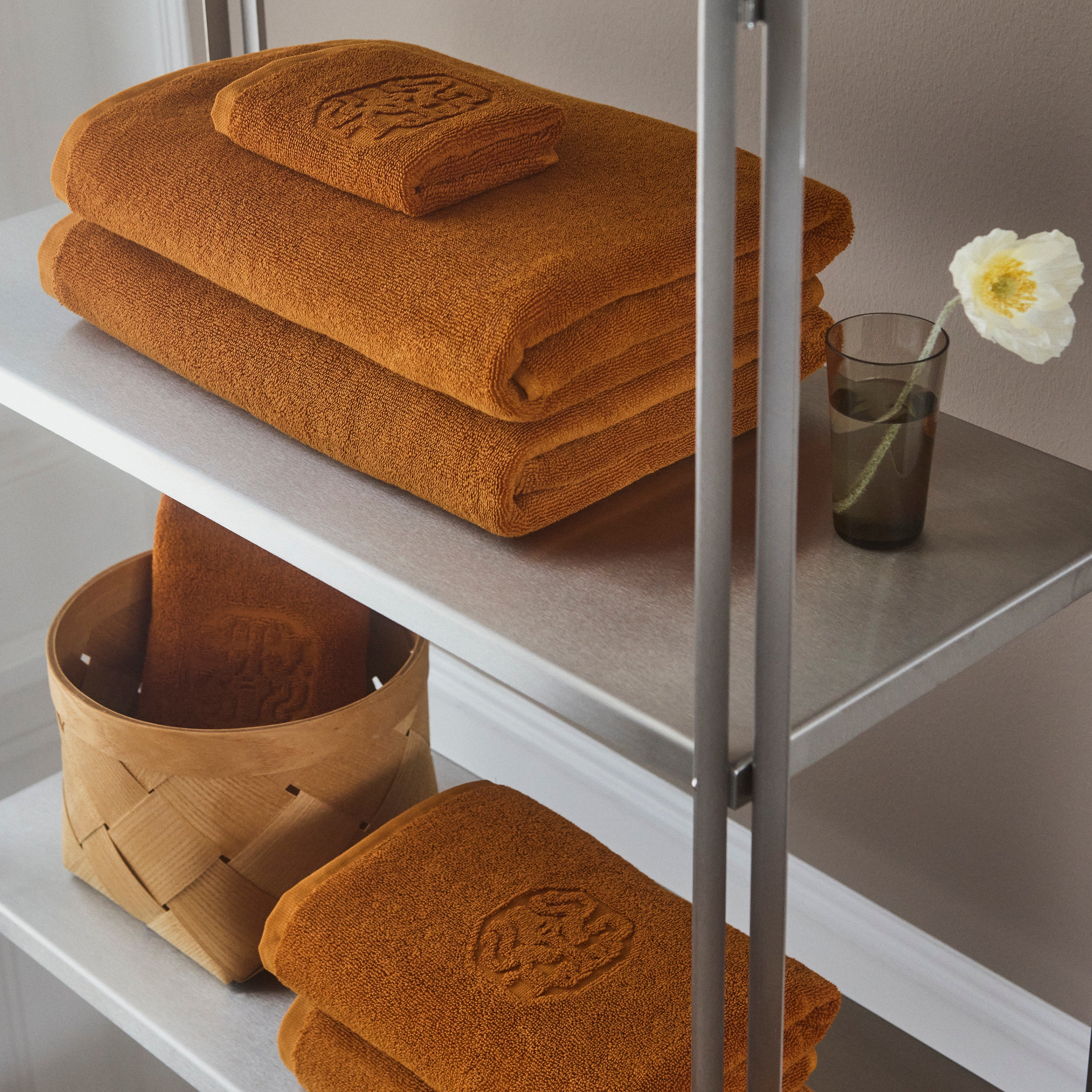 Damask Terry-badehåndkleet har et enkelt uttrykk med Georg Jensen Damasks ikoniske logo innvevd som en elegant detalj. Chanterelle er en dyp oransje farge med undertoner av karamell. Fargen er inspirert av kantarellens vakre nyanser.