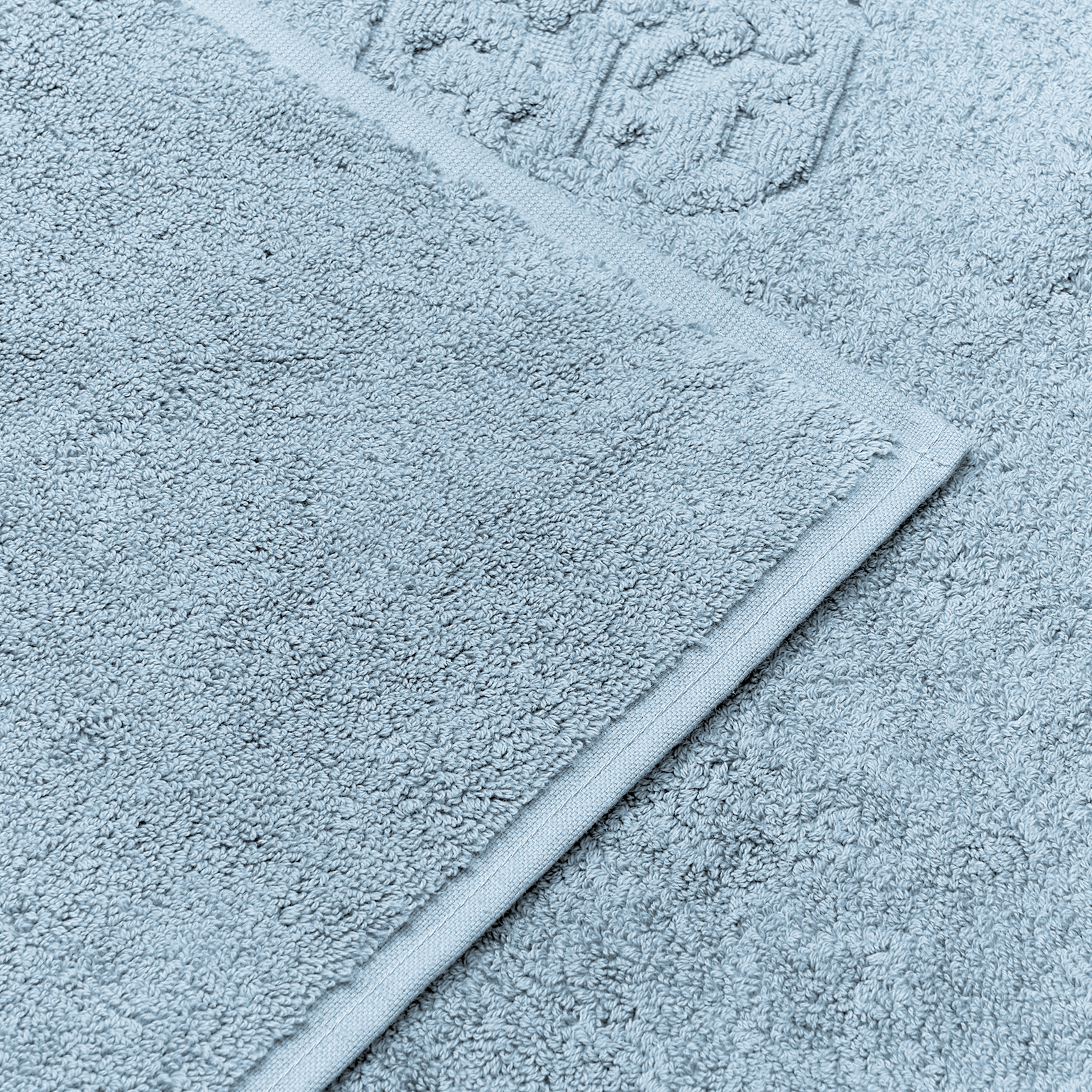 Damask Terry-badematten har et enkelt uttrykk med Georg Jensen Damasks ikoniske logo innvevd som en elegant detalj. Blue Hour er en vakker og tidløs mellomblå farge.
