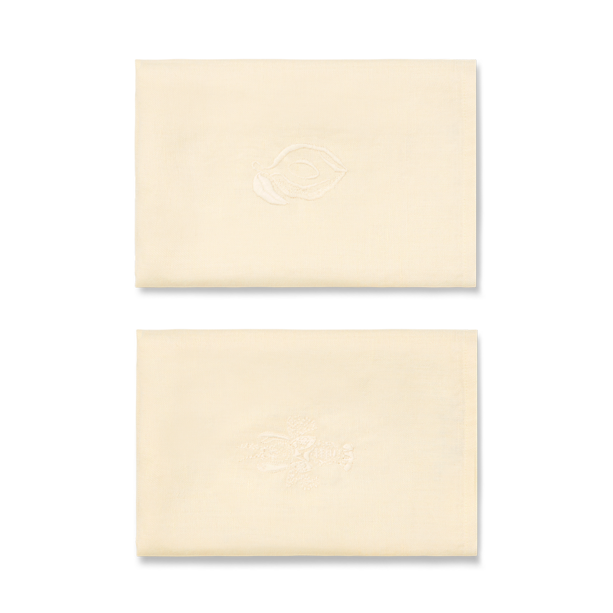 Hummer- og sitronserviettene finnes i to farger og har en påsydd stropp slik at du kan henge servietten på hjørnet av stolryggen. Pale Yellow er en fin, lysegul nyanse.