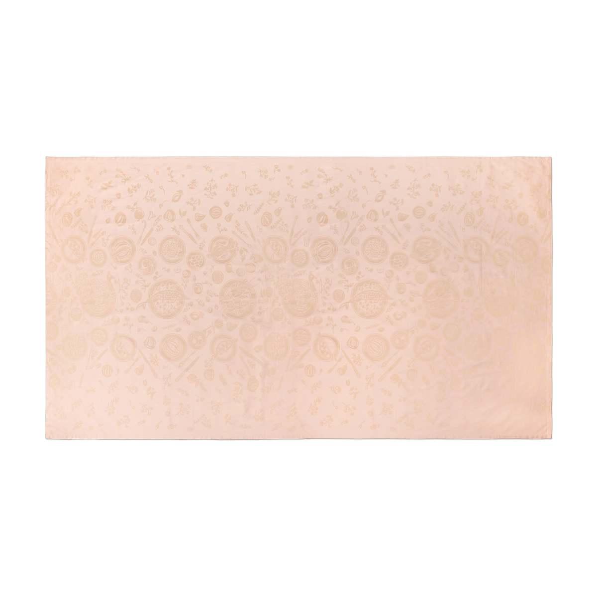 Banquet er en damaskvevd duk med et elegant design bygget på elementer fra renessansemåltidet. Duken er vevd i 100 % dobbelttvunnet, kjemmet bomull og har et innvevd Christian 4.-monogram som historisk referanse. Den er tilgjengelig i to farger. Soft Rose er en delikat rosa farge.