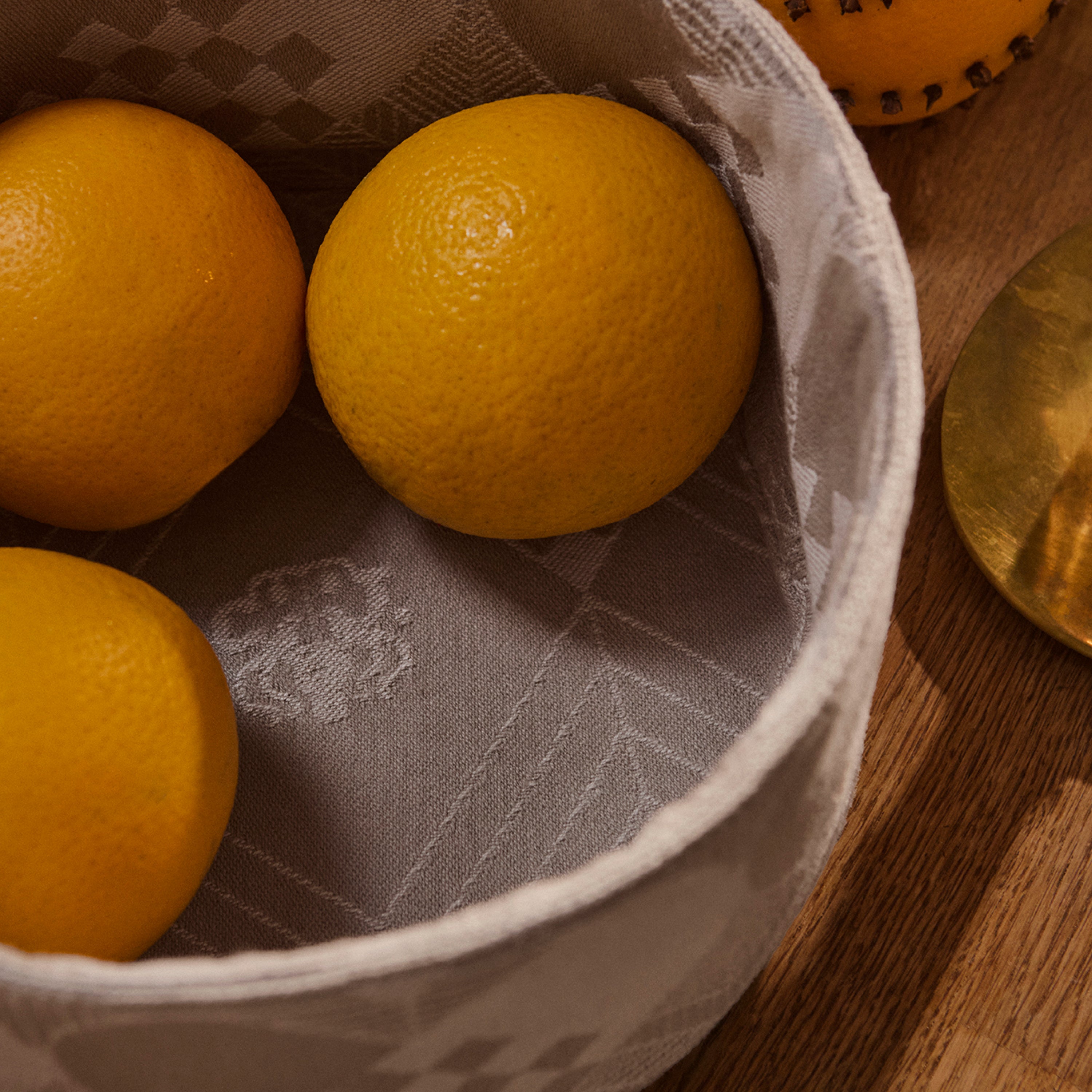 Christmas-brødkurven er et vakkert innslag på det stemningsfulle julebordet. Bodil Bødtker-Næss har tegnet noen av Georg Jensen Damasks mest ikoniske motiver, deriblant dette populære juledesignet, som har vært selve symbolet på julen siden lanseringen i 1975. Brødkurven er laget av 100 % bomull. Som en diskret detalj finner du logoen vår i bunnen av kurven.