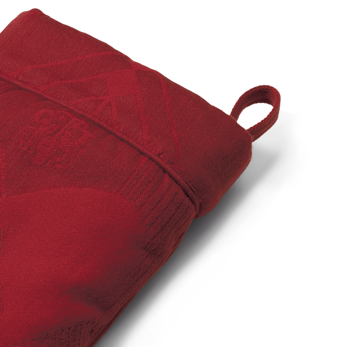 La julen være hjertenes fest med julesokken, designet med flettede julehjerter og stiliserte grankvister i den klassiske julefargen, Deep Red. Tekstilkunstner Bodil Bødtker-Næss har designet det ikoniske julemotivet.