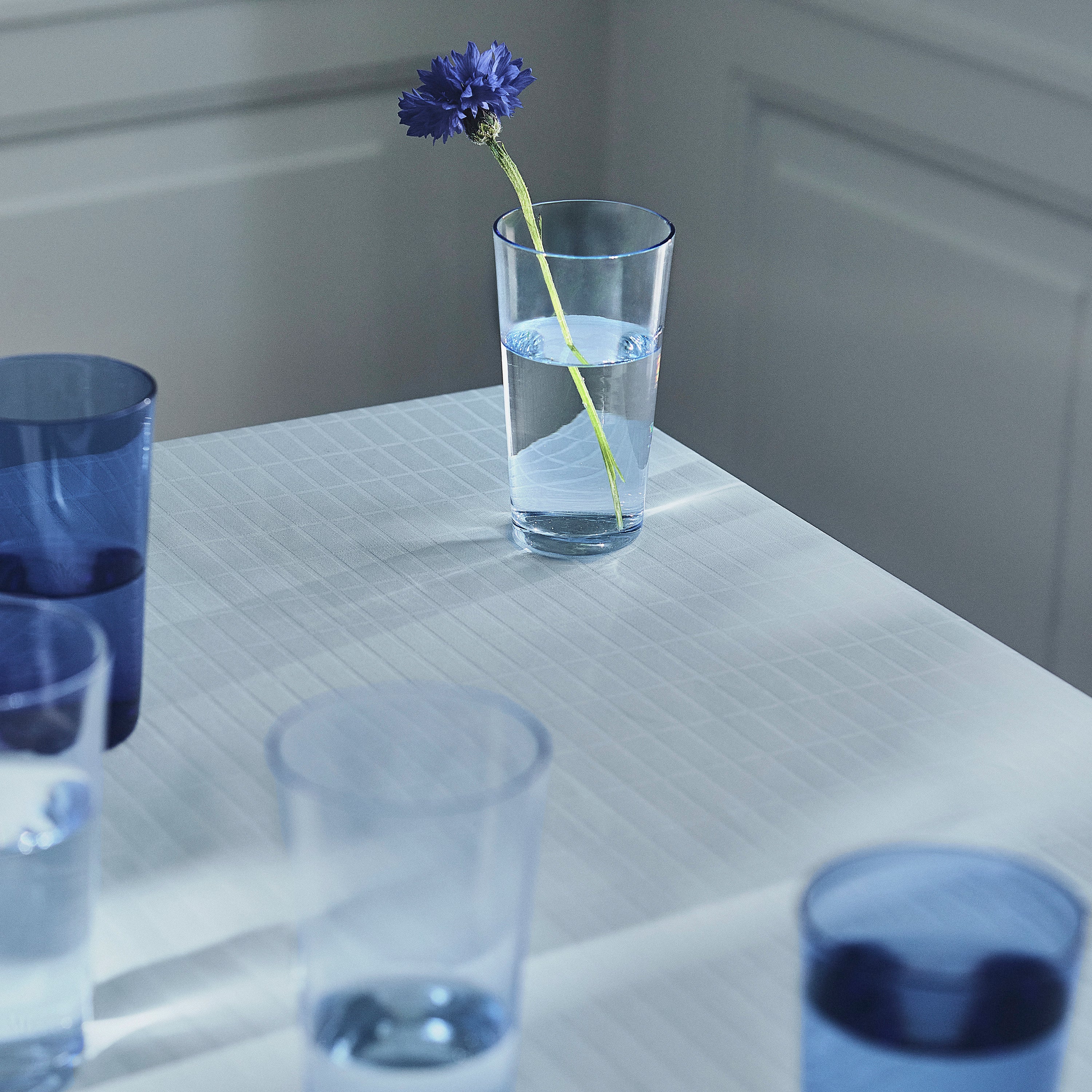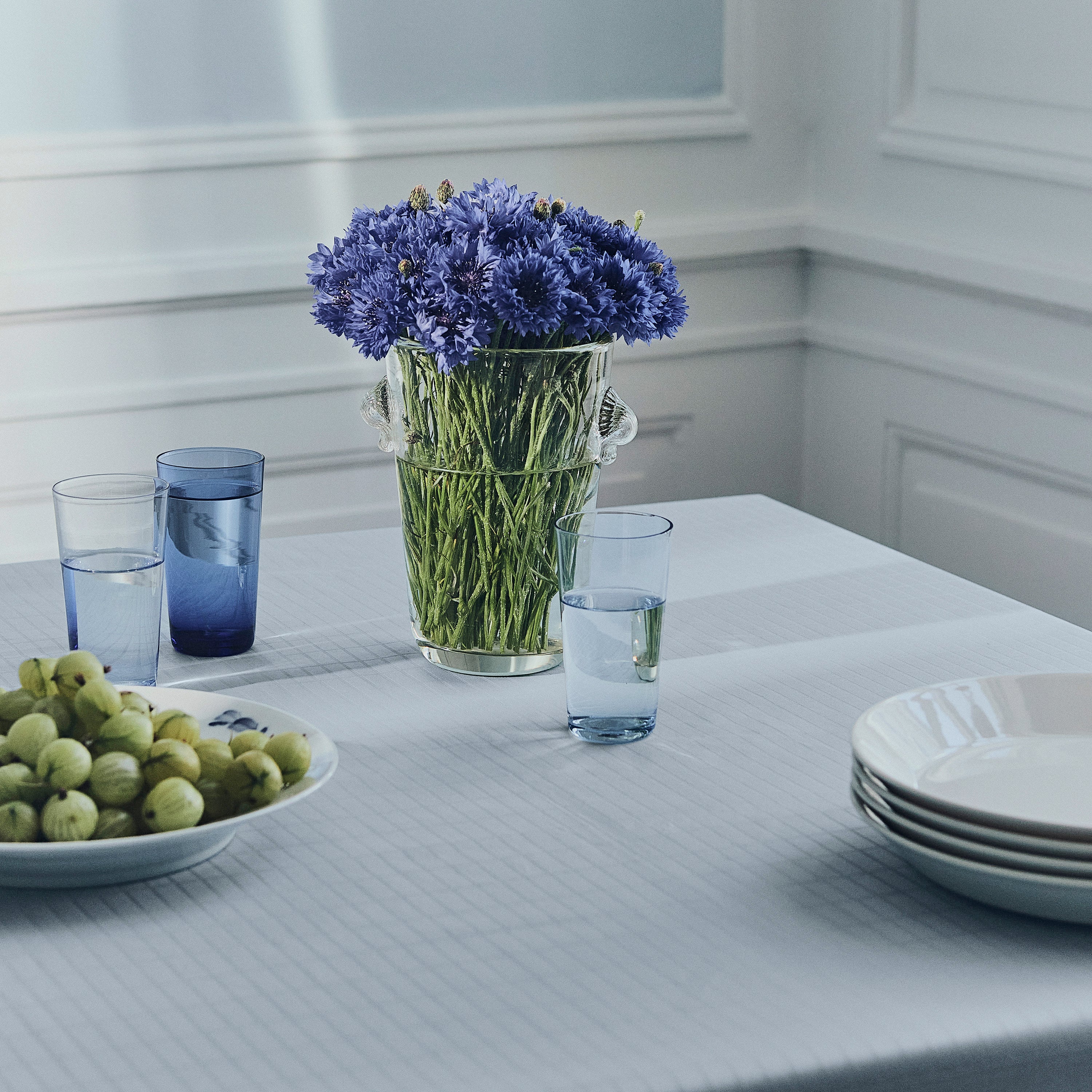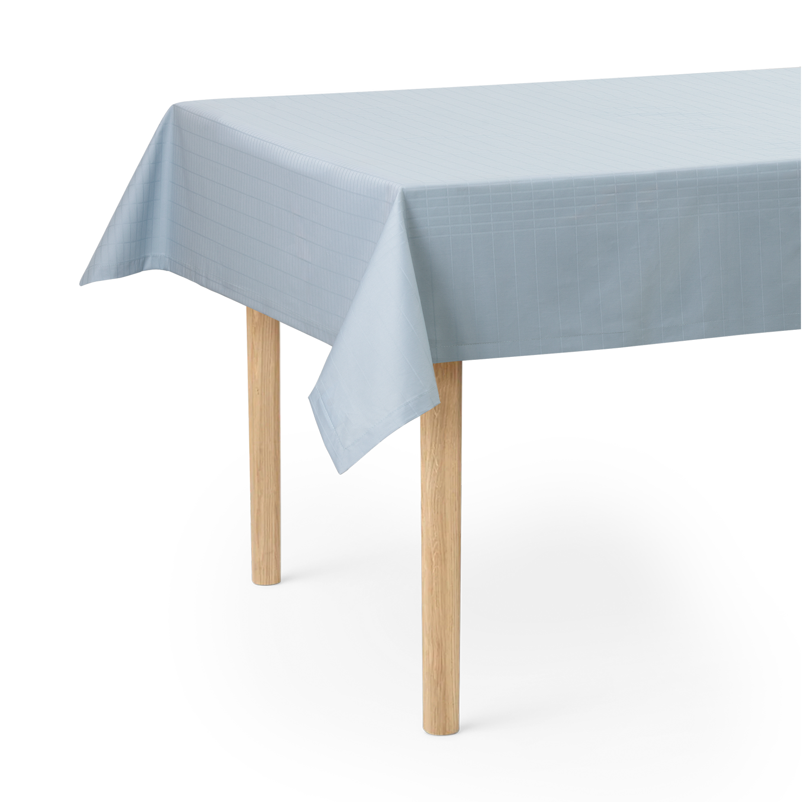 Classic Lines er en satengvevd duk i 100 % bomull med belagt overflate som gjør den vann- og smussavvisende. Duken har et enkelt uttrykk med rene linjer som skaper et elegant mønster med rektangulære ruter på bordflaten. Blue Haze er en lys og dempet blåfarge.