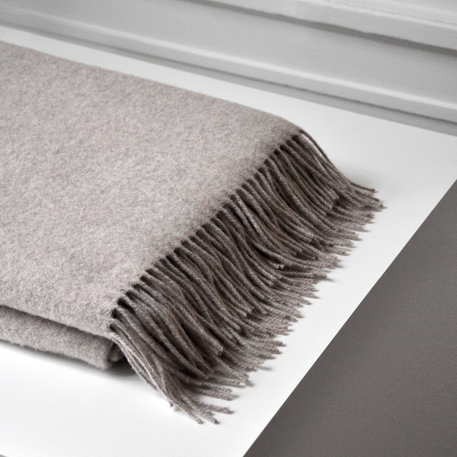 Clear har et elegant og enkelt design. Kombinasjonen av 90 % merinoull og 10 % kasjmir gjør pleddet ekstra mykt, og ullfibrenes fine struktur tilfører en spesiell letthet. Pleddet er vevd i en vakker sandfarge og har lange frynser.
