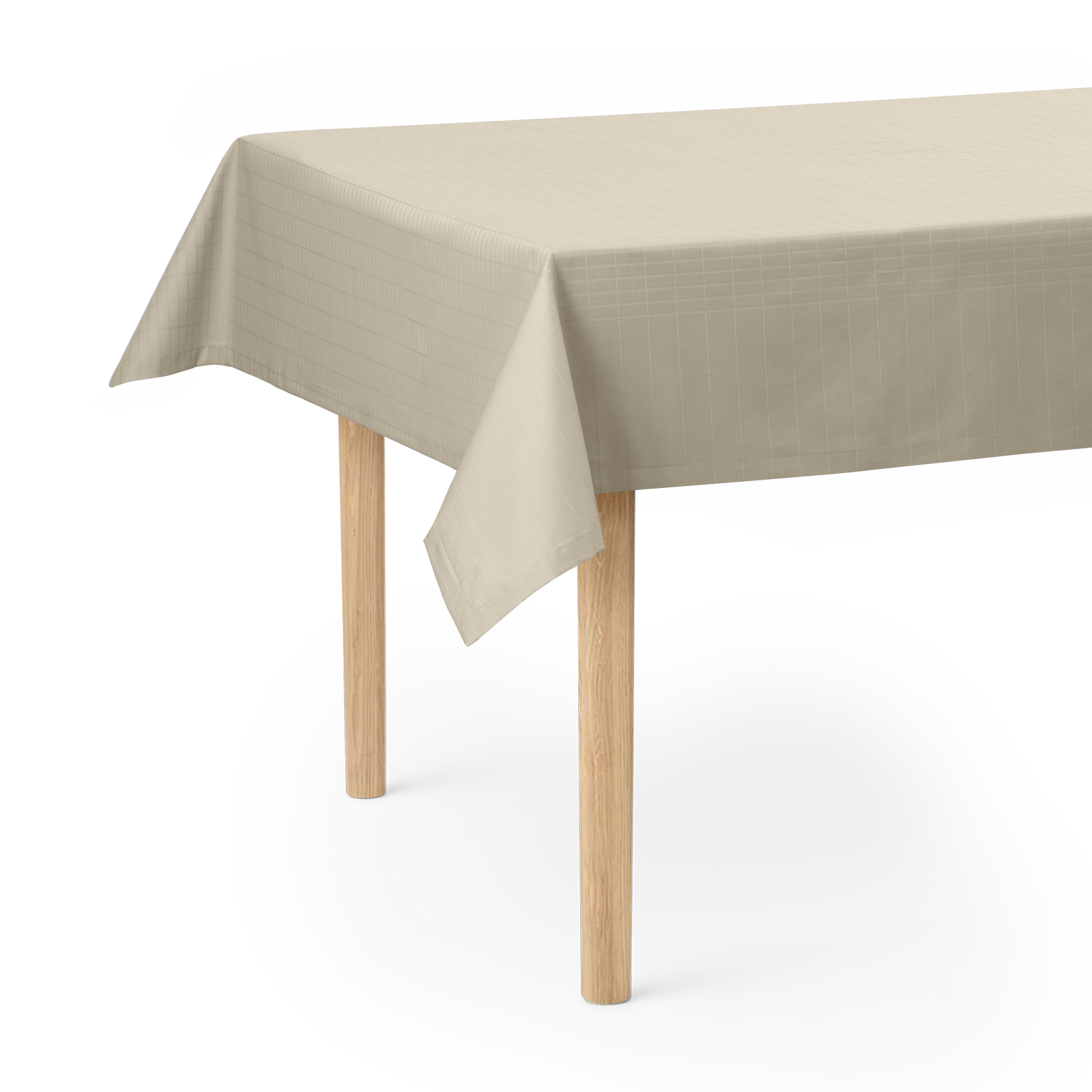 Classic Lines er en satengvevd duk i 100 % bomull med en belagt overflate som gjør den vann- og smussavvisende. Duken har et enkelt uttrykk med rene linjer på tvers, som skaper et elegant mønster med rektangulære ruter på bordflaten. Silver Sand er en varm gråtone.