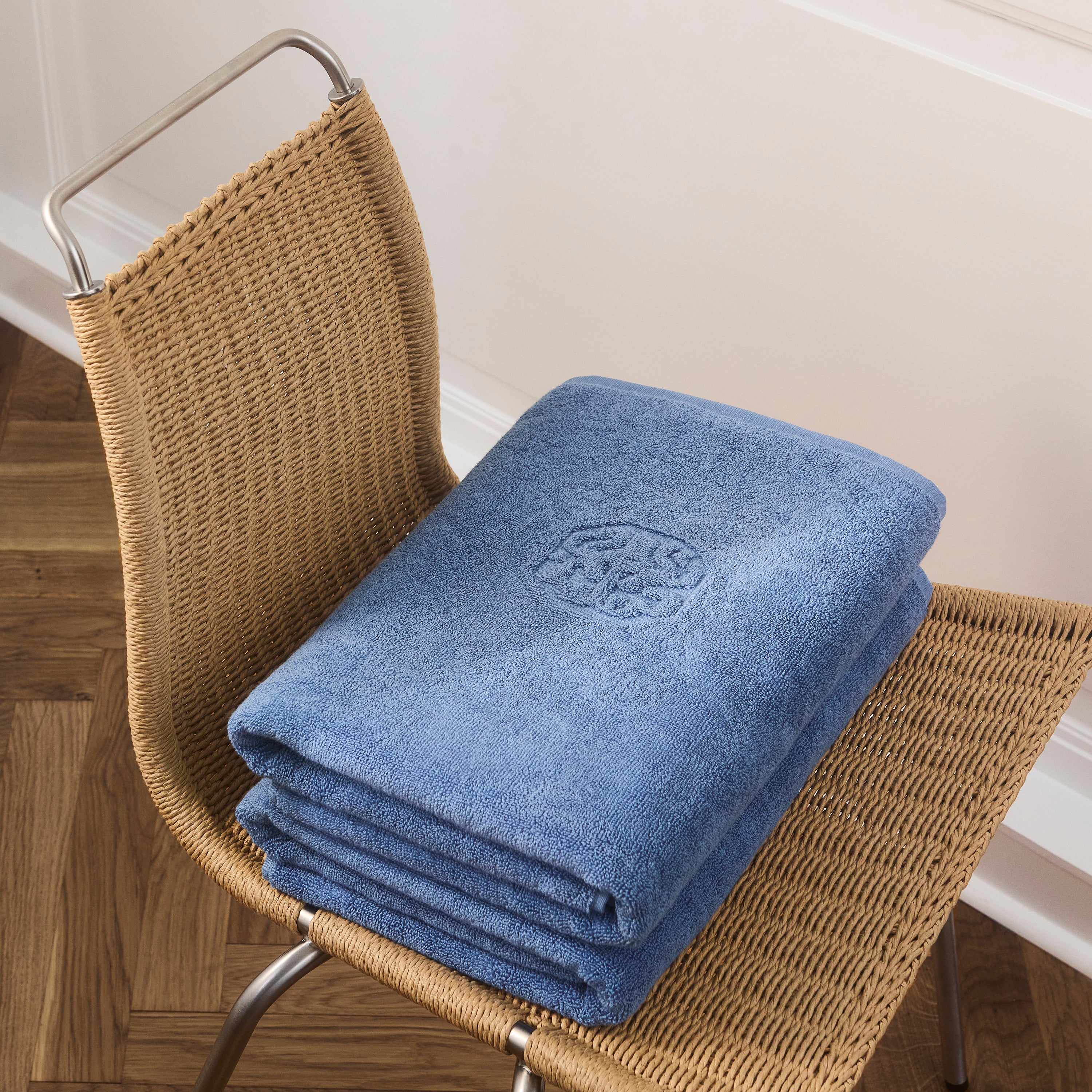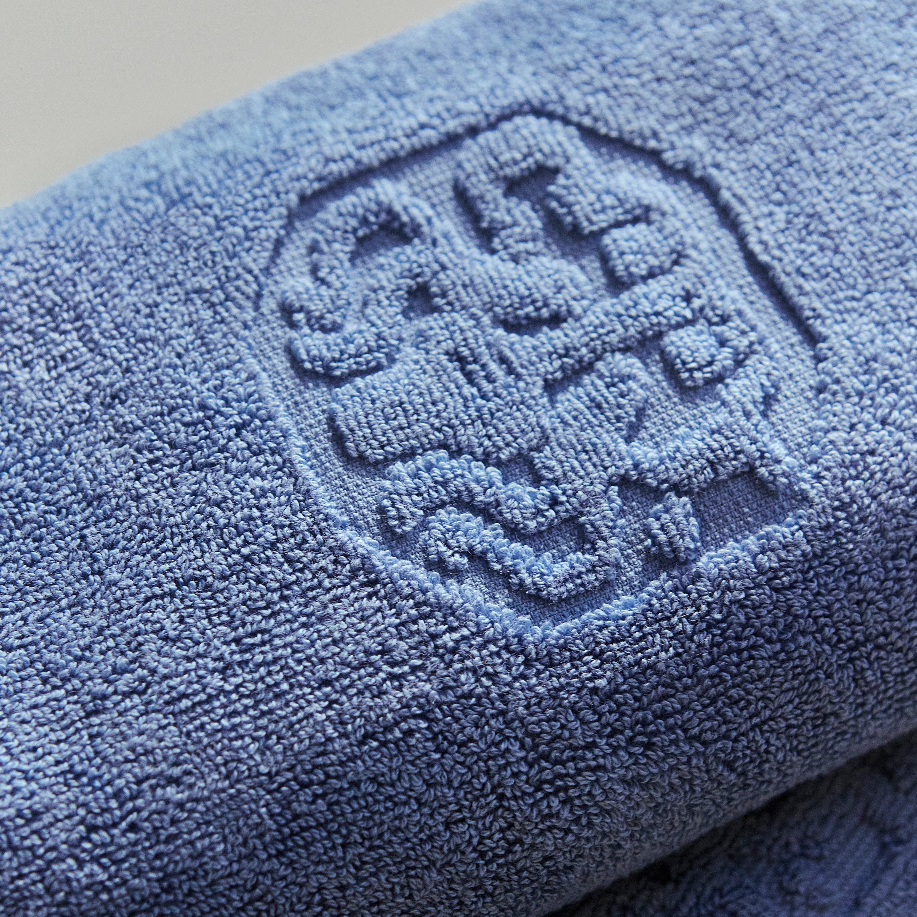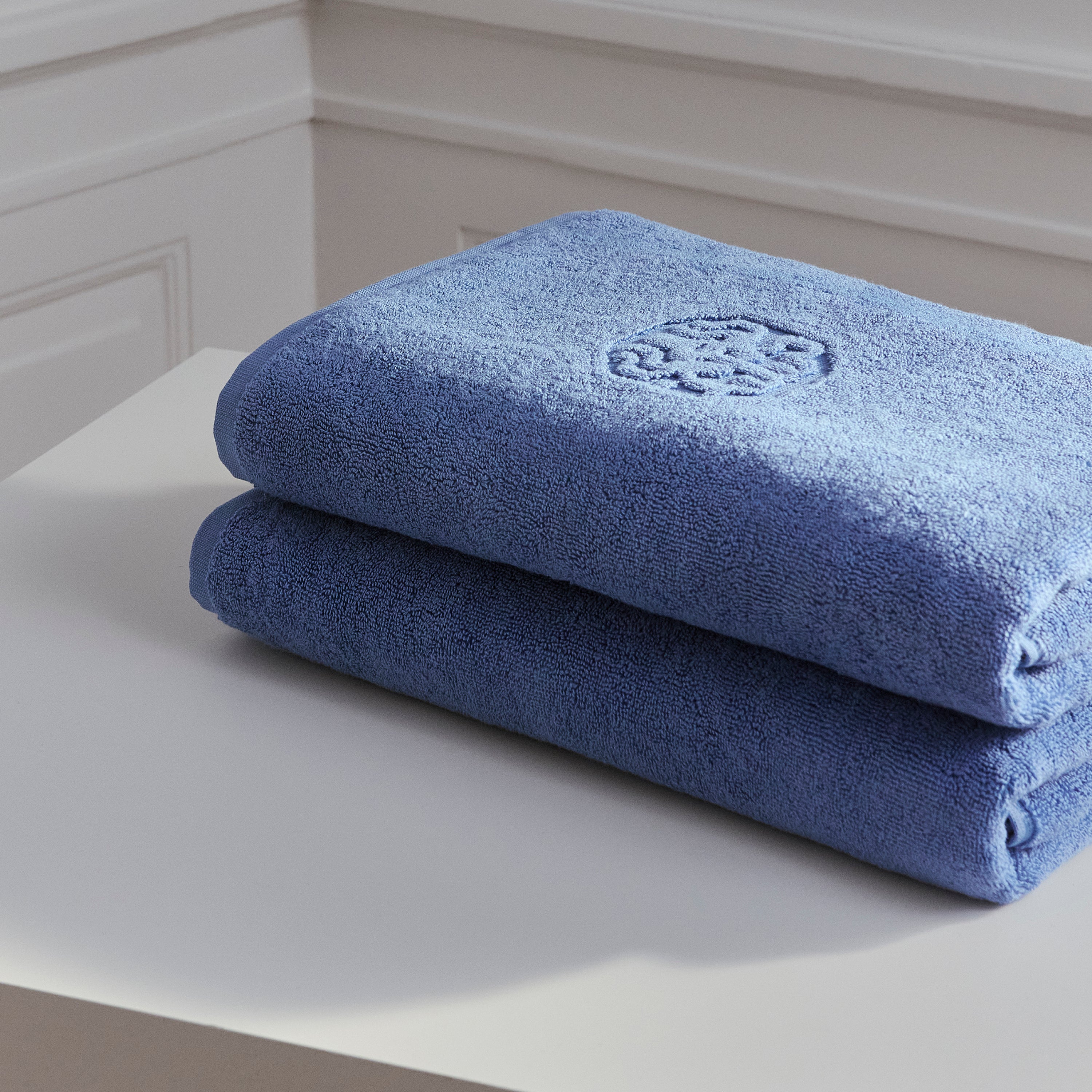 Badehåndkleet Damask Terry er frottévevd i 100 % dobbelttvunnet, kjemmet bomull. Det tykke håndkleet føles mykt og behagelig mot huden og blir bare bedre jo mer du bruker det. Fargen Bright Blue er en klar blå farge.