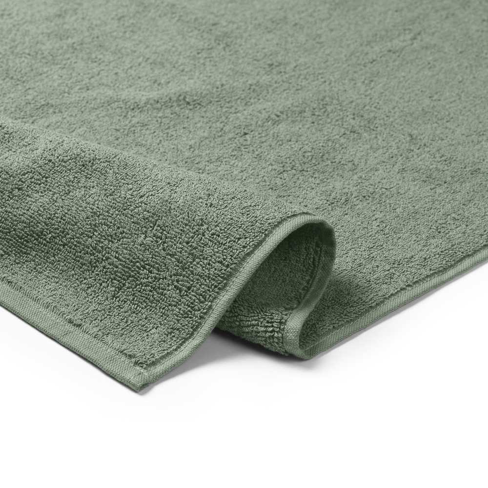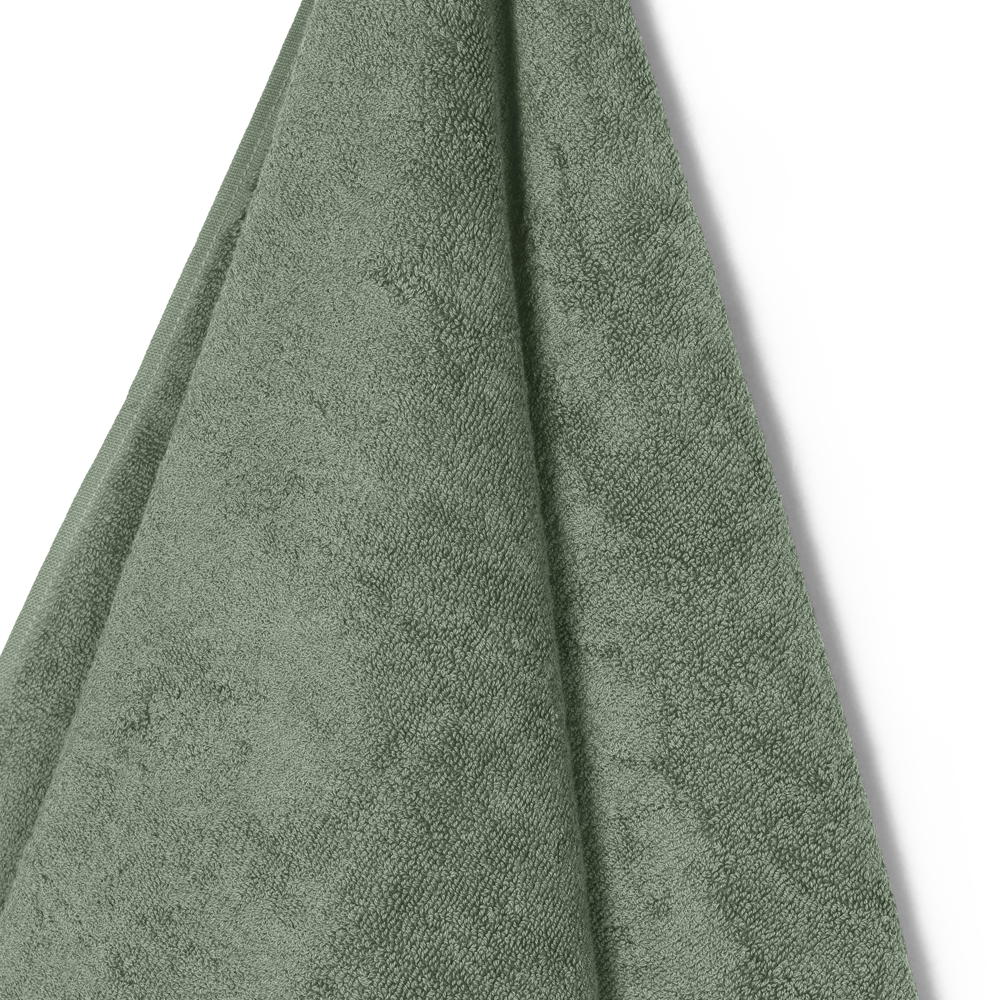 Det tykke badehåndkleet i den støvete grønne nyansen Mineral Green føles både mykt og behagelig mot huden og blir bare bedre jo mer det brukes. Fargen trekker naturen inn på badet