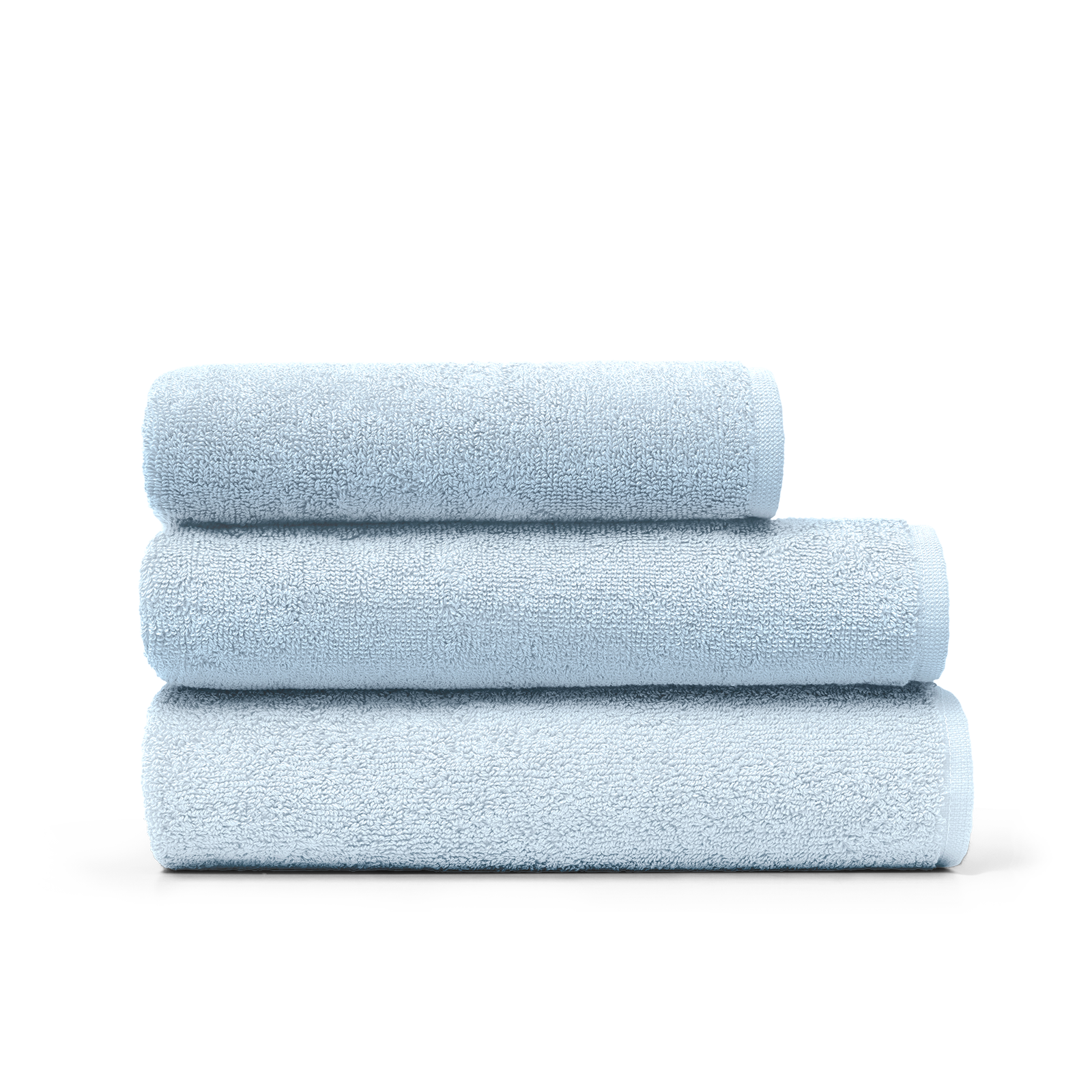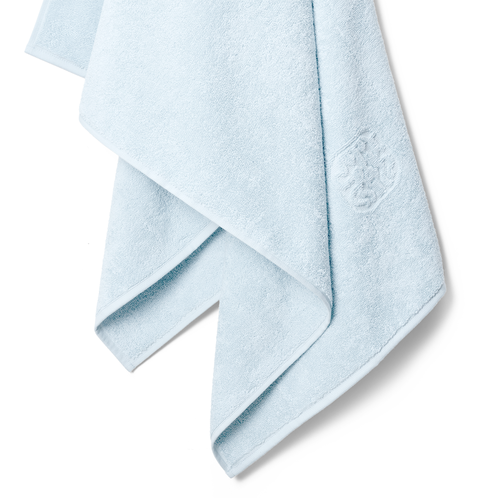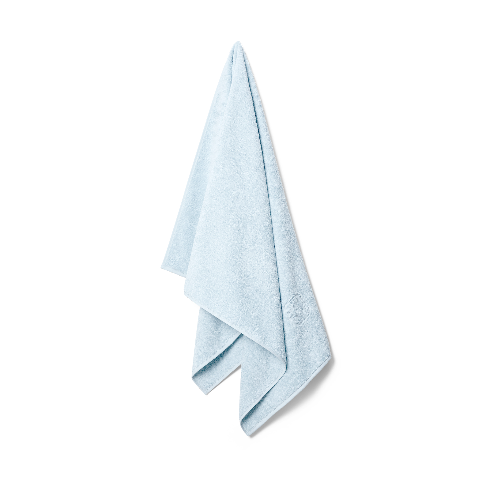 Damask Terry badehåndkleet har et enkelt uttrykk med Georg Jensen Damasks ikoniske logo innvevd som en elegant detalj. Minimal Blue er en svært lys variant av lyseblå med et hint av aqua.
