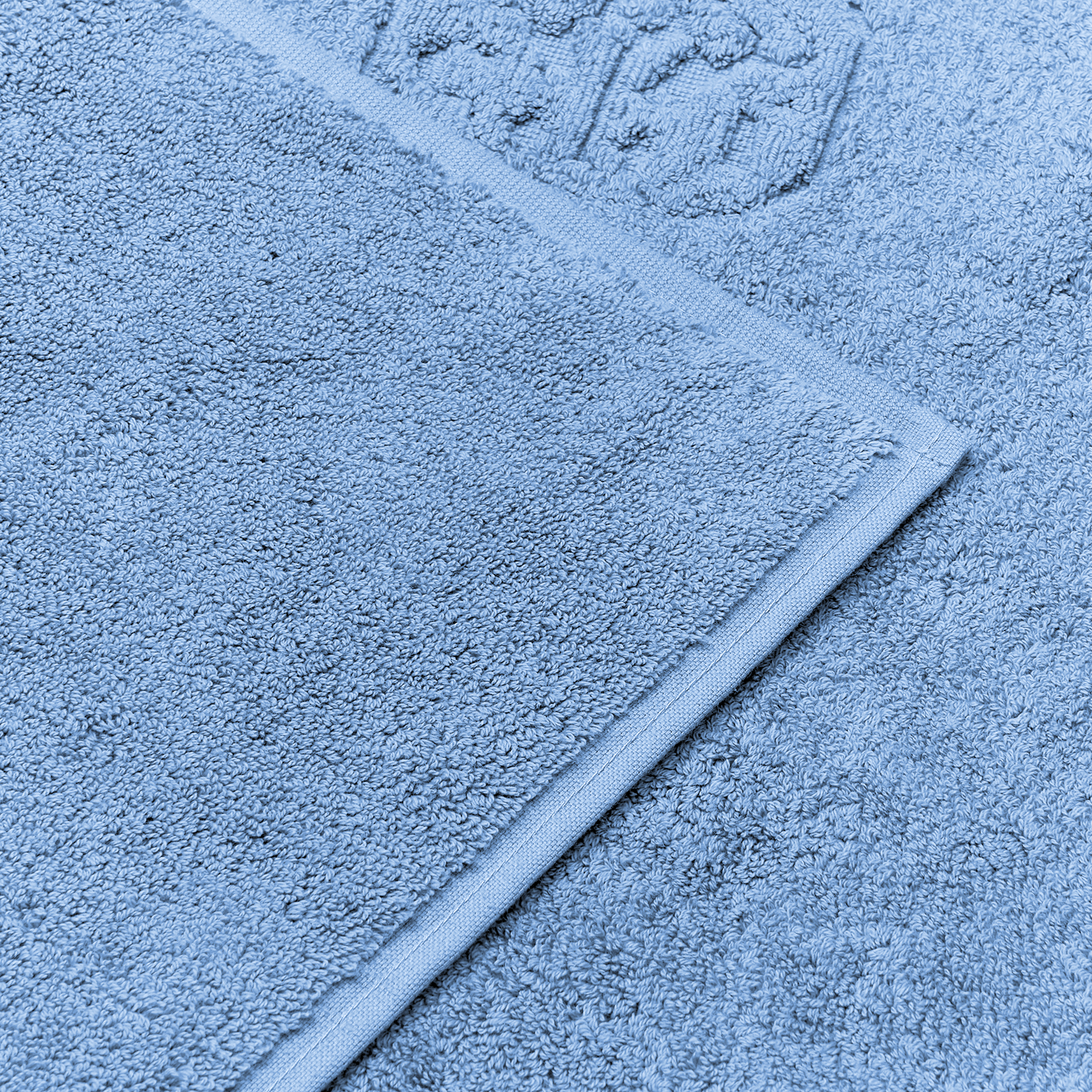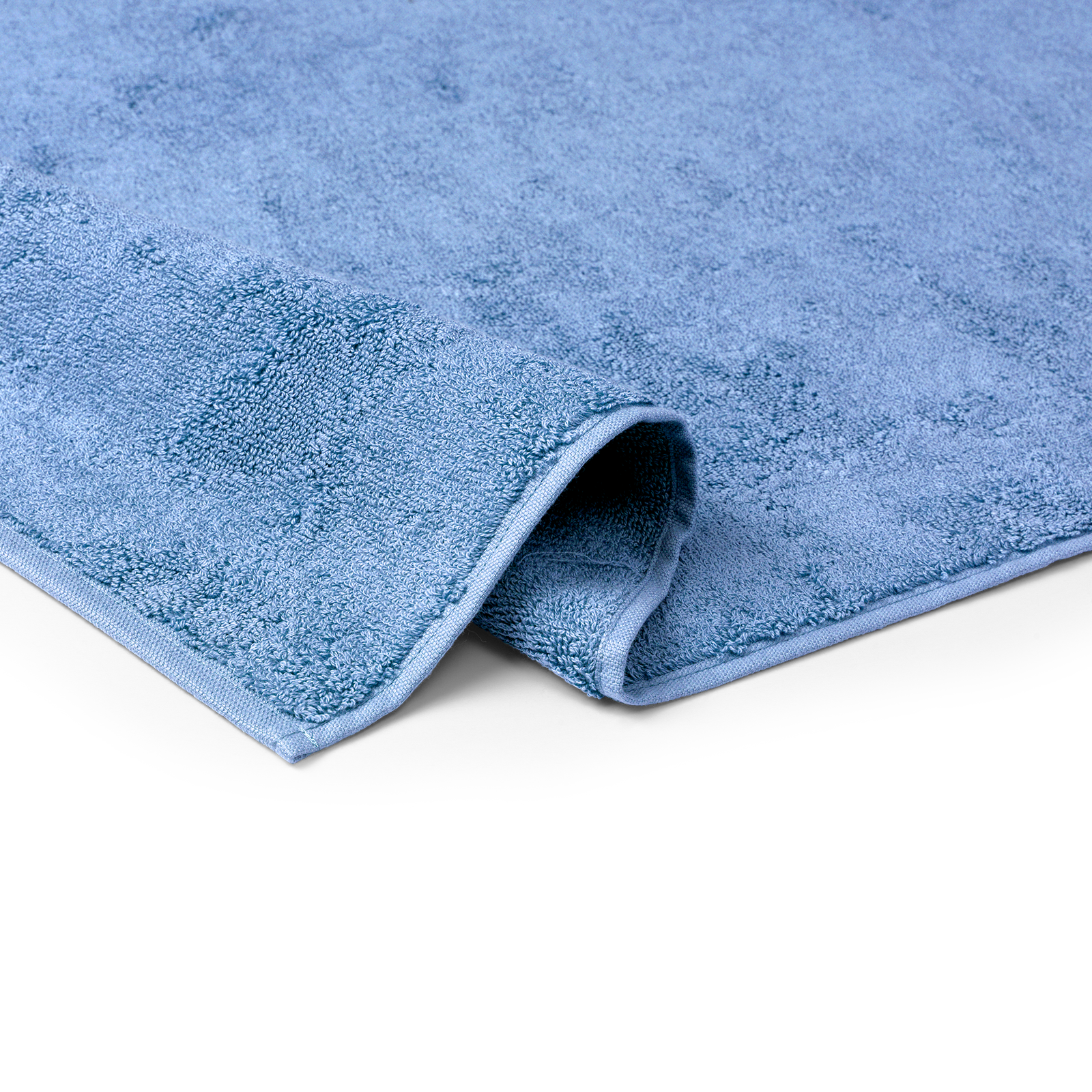 Den blå badematten Damask Terry er frottévevd i 100 % dobbelttvunnet, kjemmet bomull. Den tykke matten føles myk og behagelig under føttene og luner på de fleste bad. Fargen Bright Blue er en klar blå nyanse.