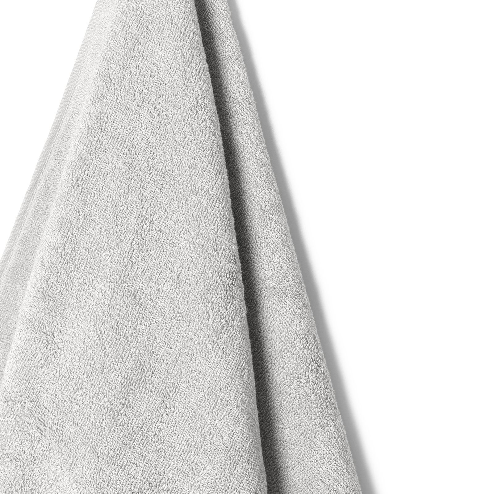Damask Terry badehåndkleet har et enkelt uttrykk med Georg Jensen Damasks ikoniske logo innvevd som en elegant detalj. Platinium Grey er en lys og rolig gråtone.