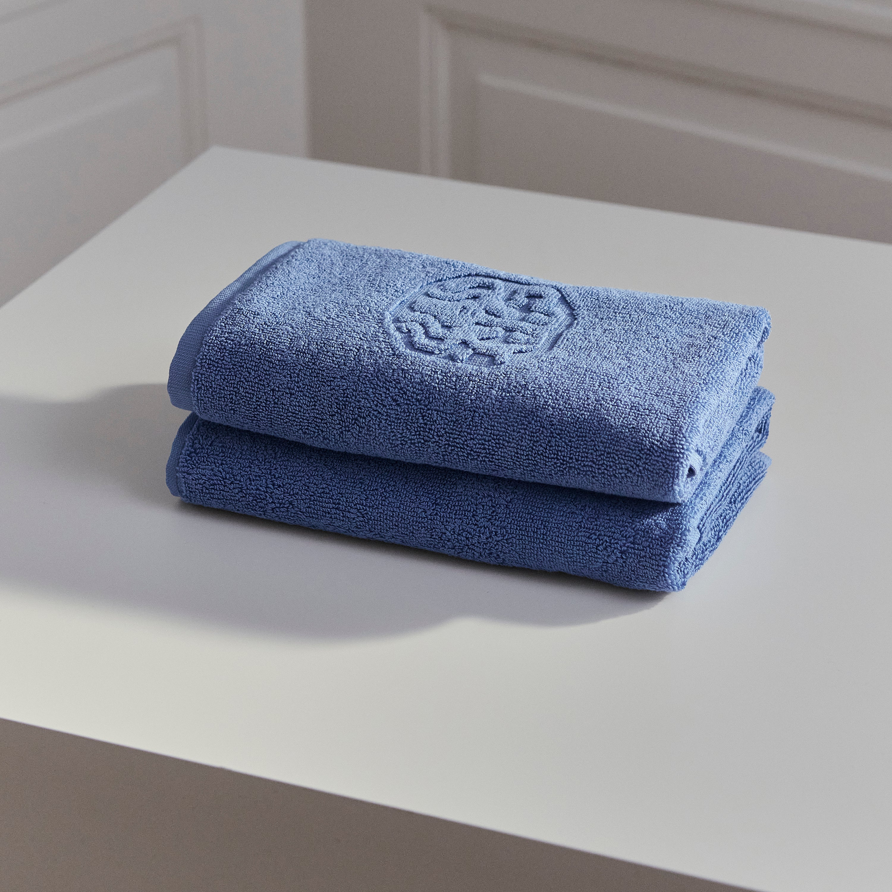 Et mykt håndkle til gjestene. Damask Terry-gjestehåndkle er frottévevd i 100 % dobbelttvunnet kjemmet bomull. Fargen Bright Blue er en klar blå farge som du finner i hele Damask Terry-serien.