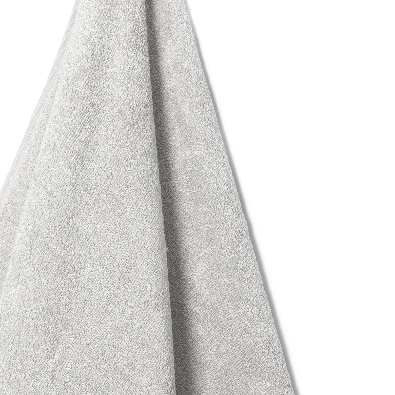 Damask Terry-håndkleet har et enkelt uttrykk med Georg Jensen Damasks ikoniske logo innvevd som en elegant detalj. Platinium Grey er en lys og rolig gråtone.