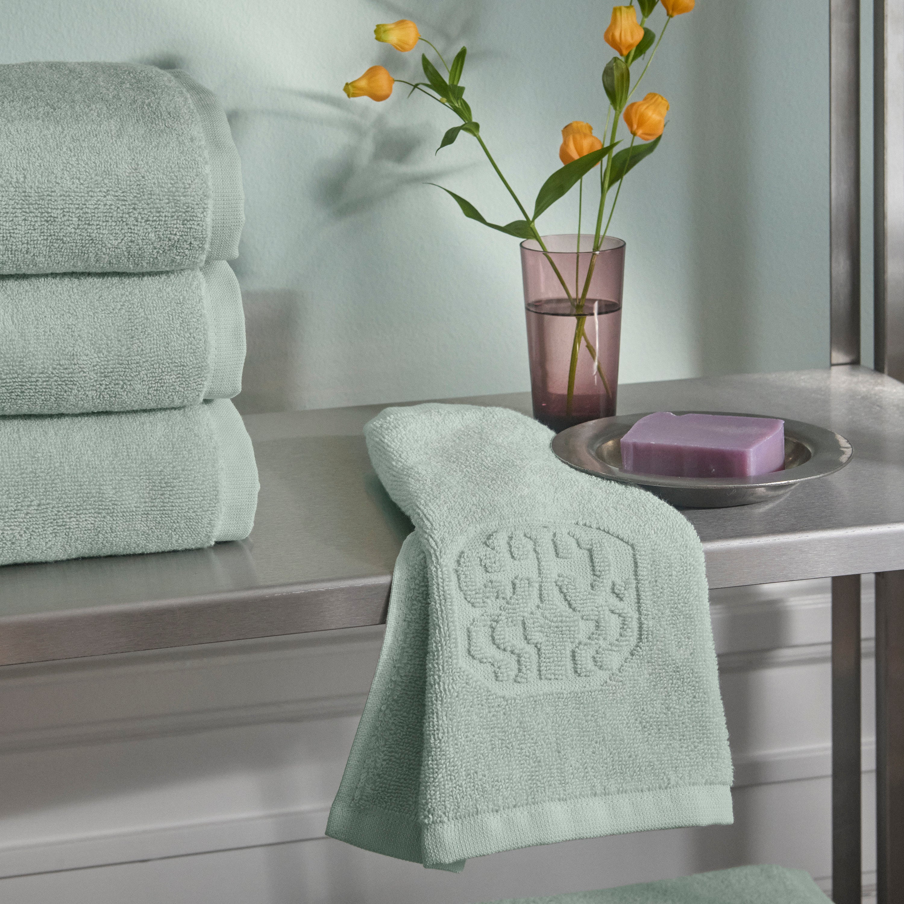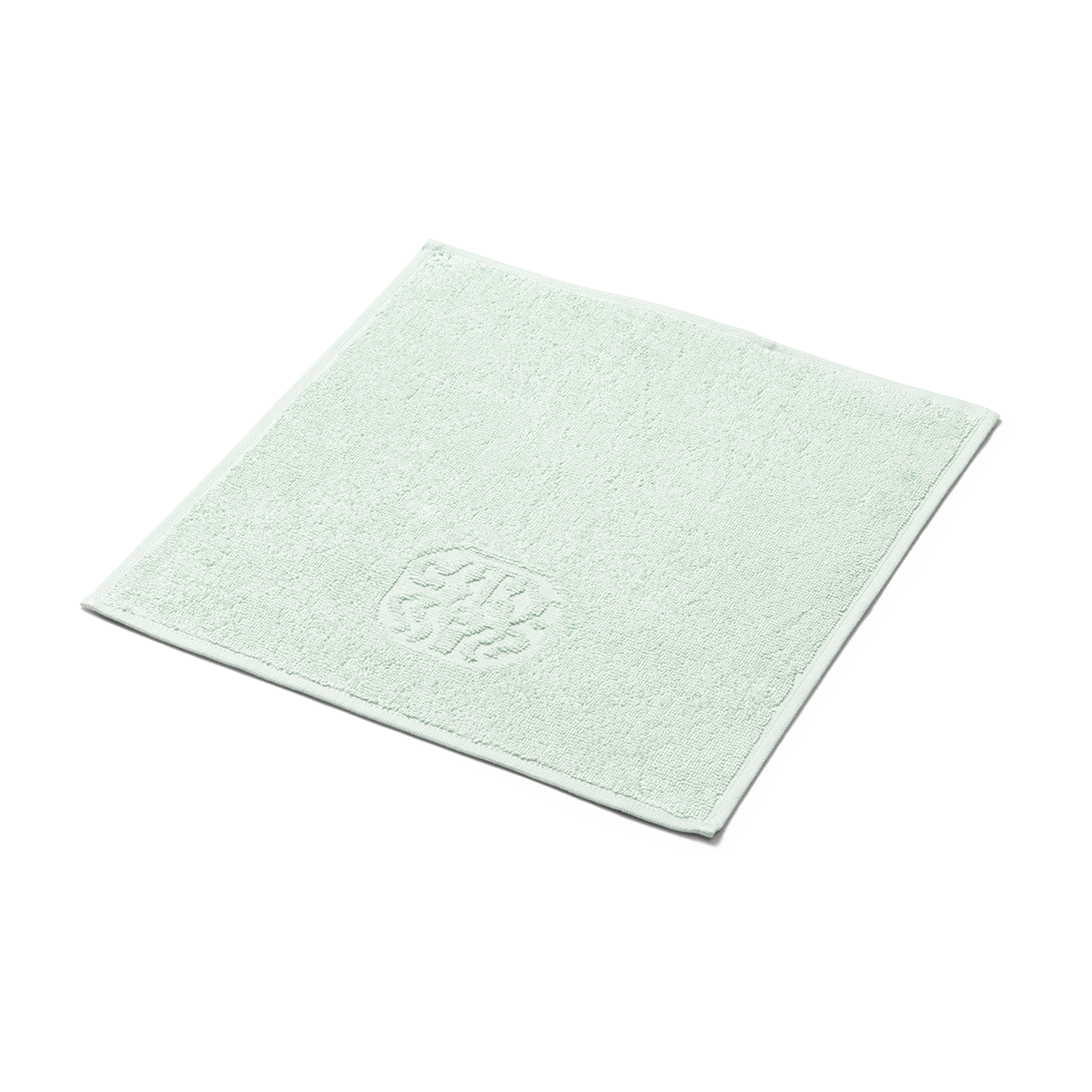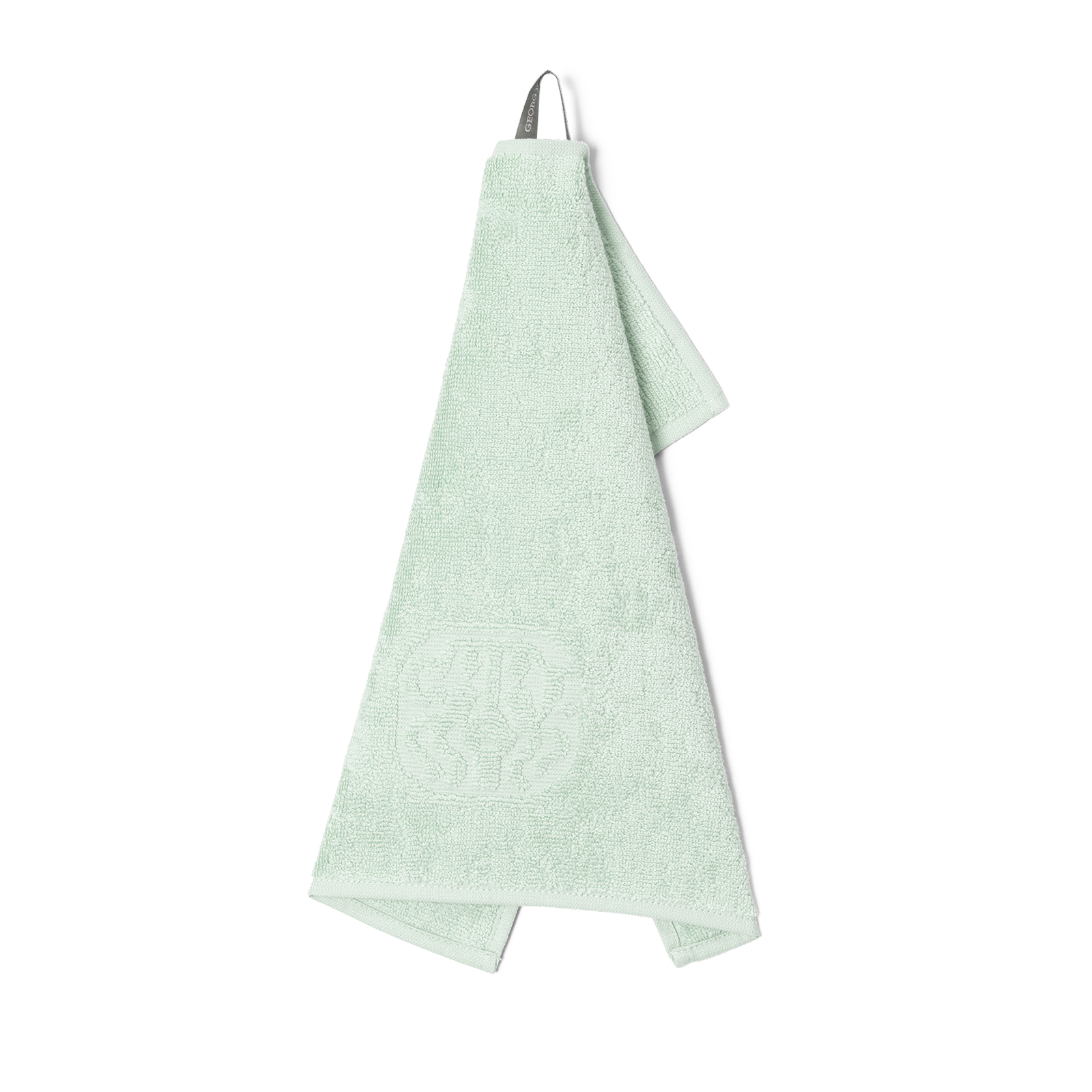 Damask Terry vaskekluten har et enkelt uttrykk med Georg Jensen Damasks ikoniske logo vevd inn som en elegant detalj. Den klare grønnblå nyansen, Glass Green, er inspirert av fargen på råglass.