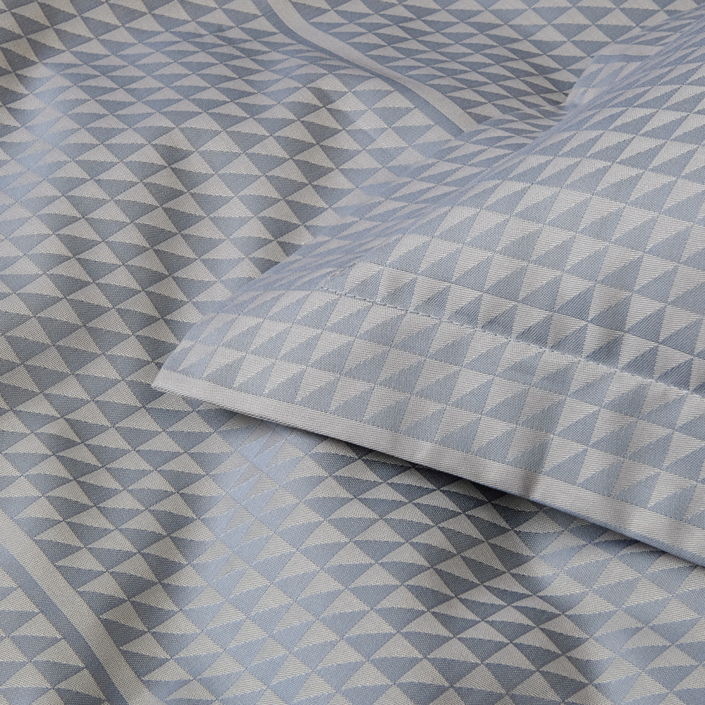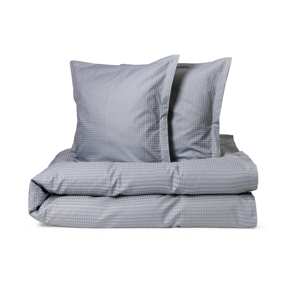 Georg Jensen Damasks Facet-sengetøy har et stringent design og er damaskvevd i 100 % kammet bomull, som gir en myk og glatt overflate. Med Facet-designet bruker tekstilkunstneren Jette Nevers den klassiske damaskvevingen til å skape et elegant spill mellom lys og skygge, som fremheves vakkert i de vakre grå tonene i fargen Quartz.