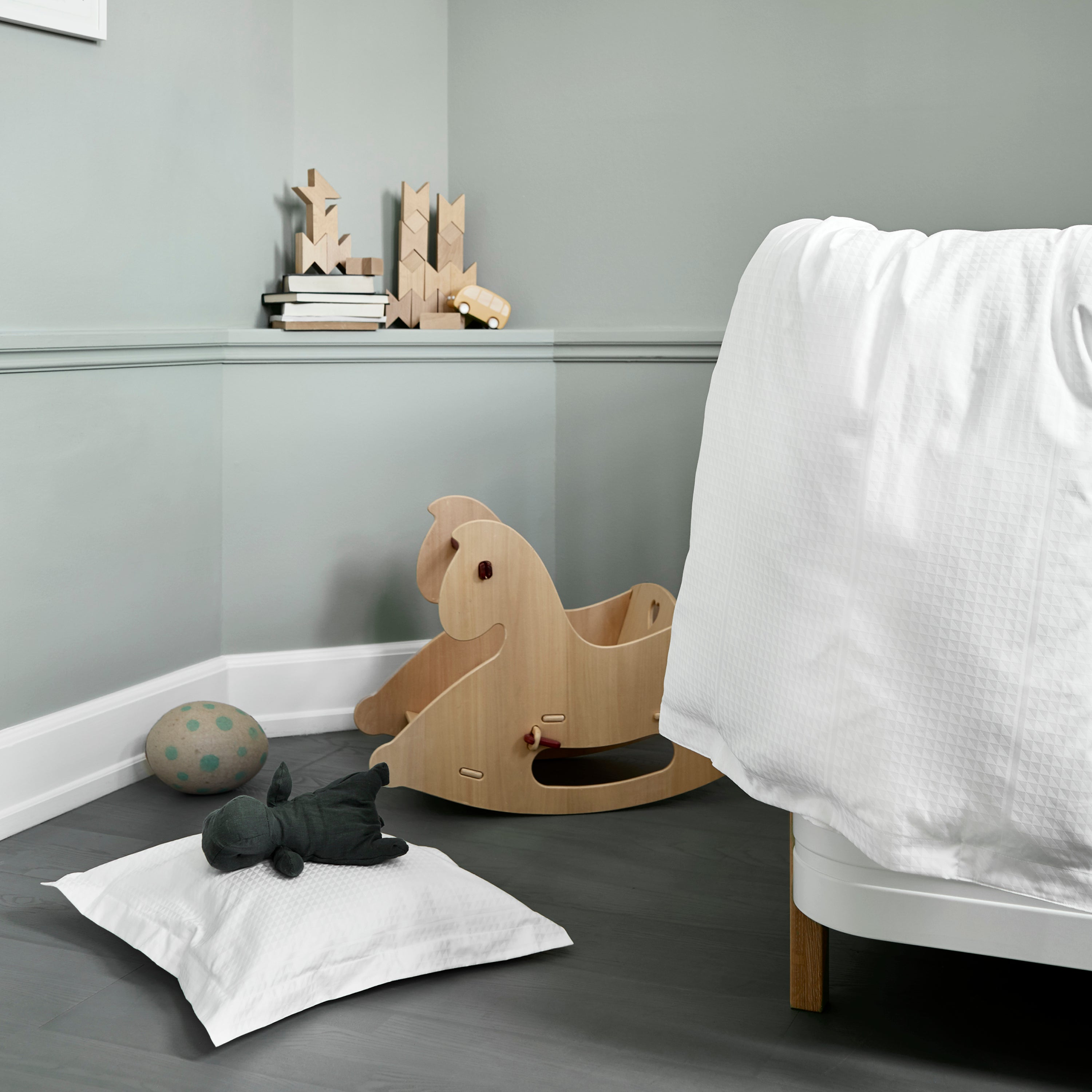 Georg Jensen Damasks Facet-sengetøy til familiens yngste har et stringent design og er damaskvevd i 100 % kammet bomull, som gir en myk og glatt overflate. Med Facet-designet bruker tekstilkunstneren Jette Nevers den klassiske damaskvevingen til å skape et elegant spill mellom lys og skygge.