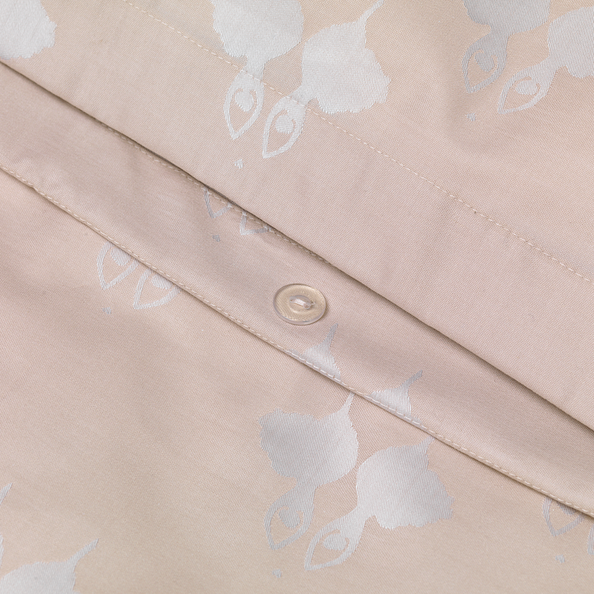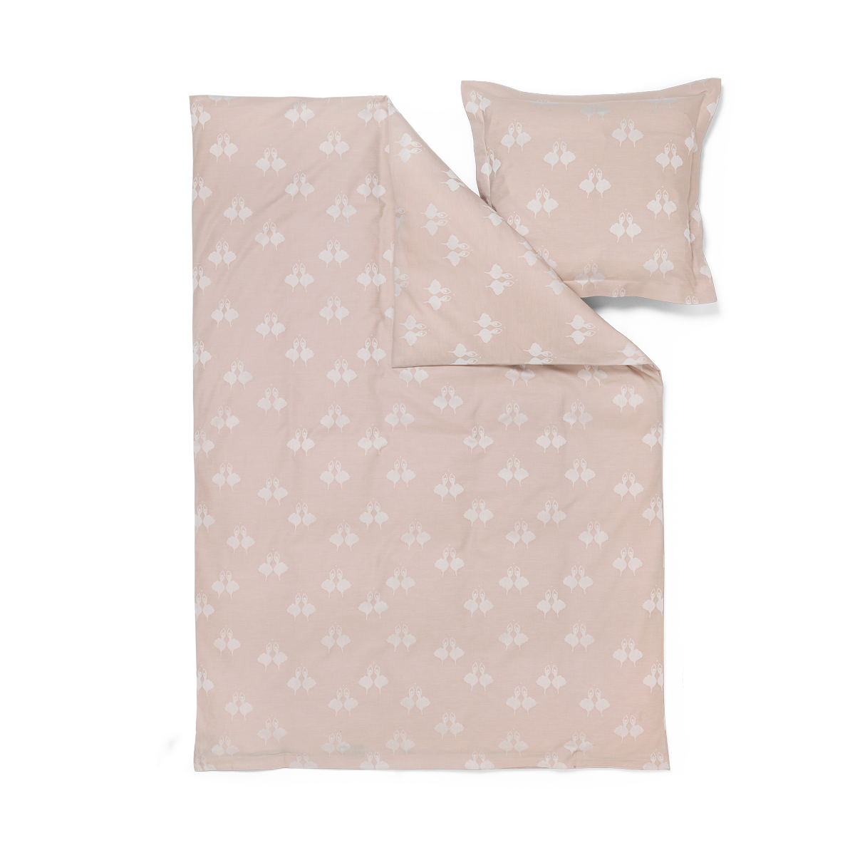 I den sarte rosa pastellfargen sender sengetøyet de små og litt større jentene avsted til drømmeland svøpt i den ypperste, myke kvalitet og i et poetisk design. Et baby- og juniorlaken fra Georg Jensen Damask i en solid lerretsvevning fullfører uttrykket.