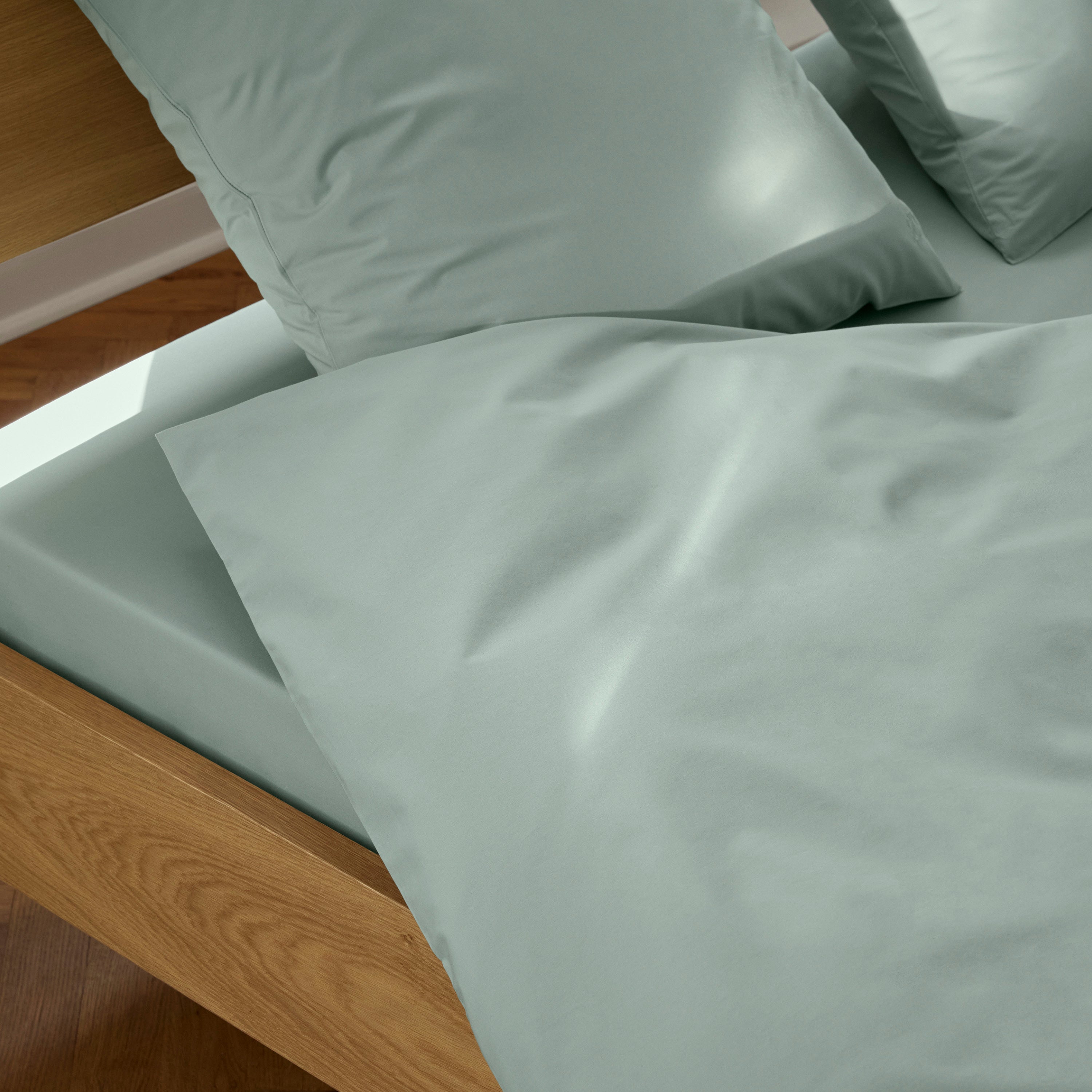 Supima Percale-serien omfatter alt fra sengegavler og puter til Dynetrekk og laken i farger som lysegrått, lysegrønt, kjølig blått og varme jordfarger. De lange bomullsfibrene gir sengetøyet en spesielt vakker og svært jevn fargetone.
